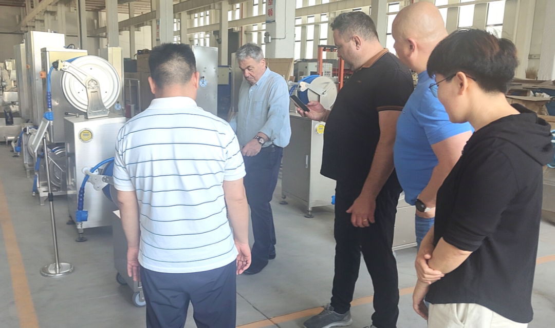 在參觀中,王總針對(duì)不同類型設(shè)備的技術(shù)特點(diǎn)、應(yīng)用范圍分別給予了深入講解。尤其是面對(duì)食品工廠清洗消毒的難點(diǎn)痛點(diǎn),公司提供了很多有效的解決方案,獲得了客人的高度贊揚(yáng)。客戶團(tuán)隊(duì)中設(shè)備專家饒有興趣地同王總進(jìn)行了技術(shù)交流,對(duì)喬優(yōu)公司設(shè)備的先進(jìn)設(shè)計(jì)理念、制造工藝給予了高度評(píng)價(jià),并提出了強(qiáng)烈的合作意愿。