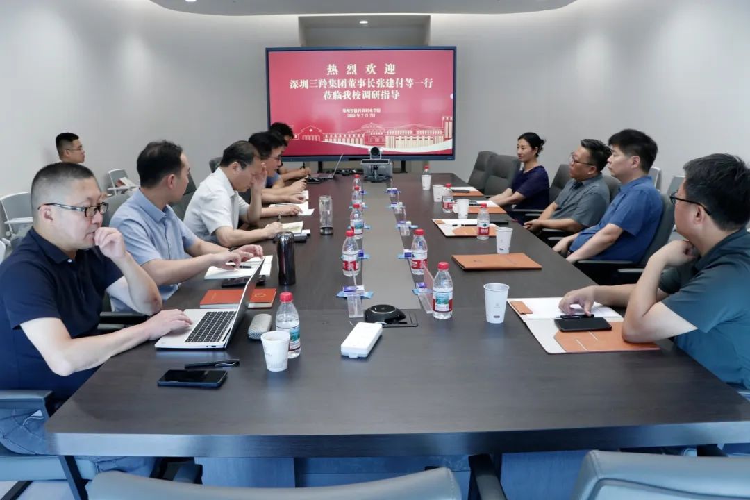 7月7日,深圳三羚集團董事長張建付、副總經(jīng)理鄭龍強一行到校調(diào)研交流。省僑商會駐會執(zhí)行會長、學(xué)校校長王廣國,副校長張保來、韓萬兵及校企合作處、智能制造學(xué)院負責(zé)人參加座談。座談會由張保來主持。