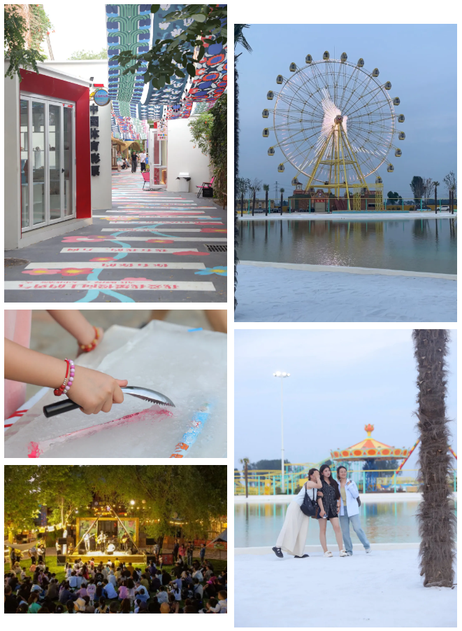 除了不斷更新的展覽之外,在藝術(shù)館旁邊還新開辟出一條時光巷,巷內(nèi)更有全新的打卡互動裝置共同營造出煙火到藝術(shù)場景切換的氛圍。此外,狂歡鴨田園主題親子樂園的動力設(shè)施、沙灘水域、戶外蹦迪等老少皆宜的項目和活動,也為親子出游提供了一個好的選擇和去處。這個夏天,小鎮(zhèn)在傳承與創(chuàng)新中不斷煥發(fā)著新的生機與活力。