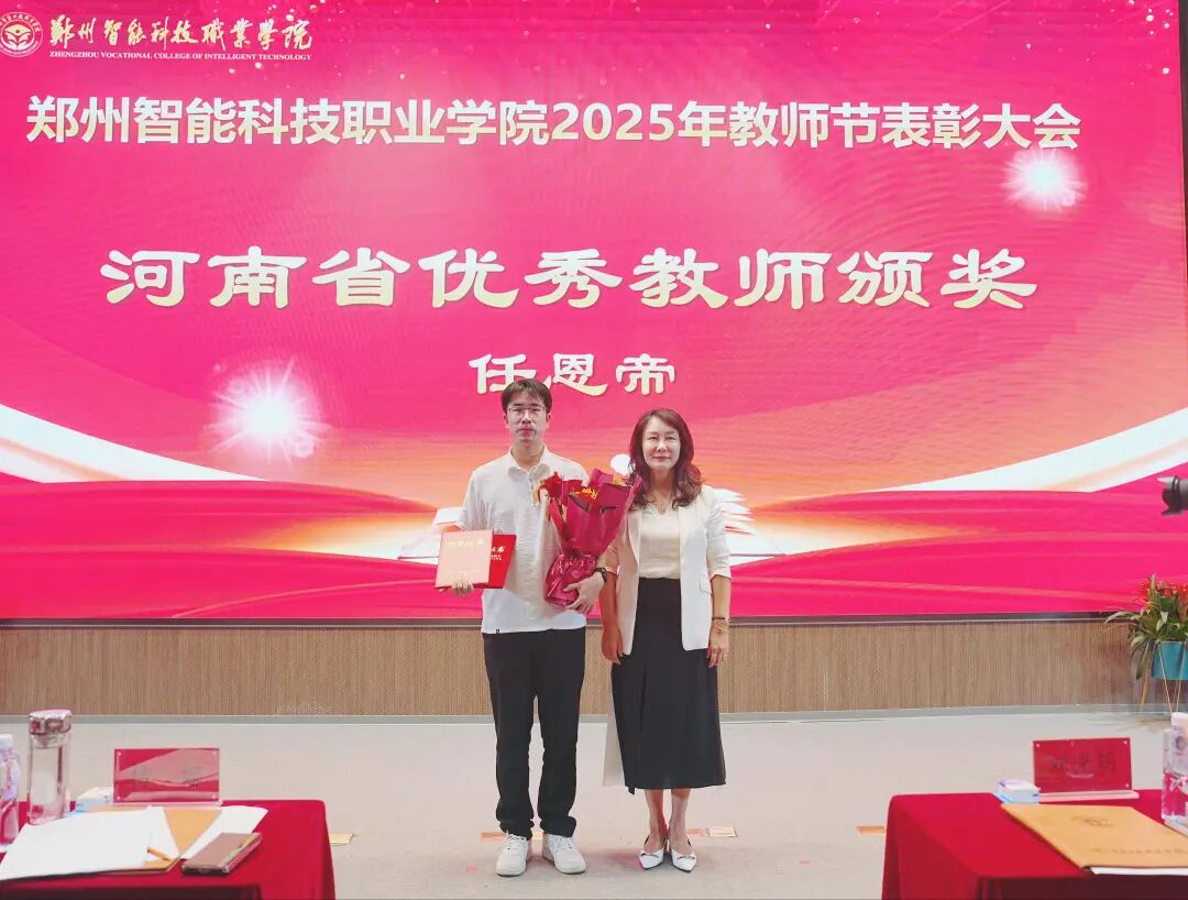 董事長楊娜為河南省優(yōu)秀教師任恩帝頒獎