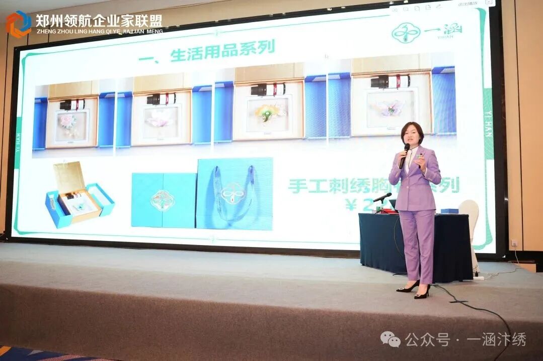 在企業(yè)推介環(huán)節(jié),董事長張留鳳圍繞《經(jīng)濟下行壓力下的非遺轉型之路》發(fā)表主題演講,她深入分享了一涵汴繡在堅守非遺核心技藝的同時,于新產(chǎn)品研發(fā)、供應鏈強化、知識產(chǎn)權保護體系構建、專業(yè)化人才梯隊培養(yǎng)以及提升社會關注度等方面的創(chuàng)新理念與實踐成果,收獲了在座領導和企業(yè)家朋友的廣泛關注。