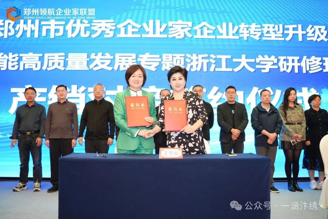 近日,由鄭州市工業(yè)和信息化局主辦的“企業(yè)轉型升級賦能高質量發(fā)展專題浙江大學研修班”在杭州浙江大學隆重舉行。本次研修班匯聚了鄭州市重點企業(yè)的董事長和總經(jīng)理,旨在通過系統(tǒng)學習,賦能企業(yè)高質量發(fā)展。一涵汴繡董事長張留鳳作為非遺行業(yè)代表受邀參加,并與多家企業(yè)達成戰(zhàn)略合作簽約。