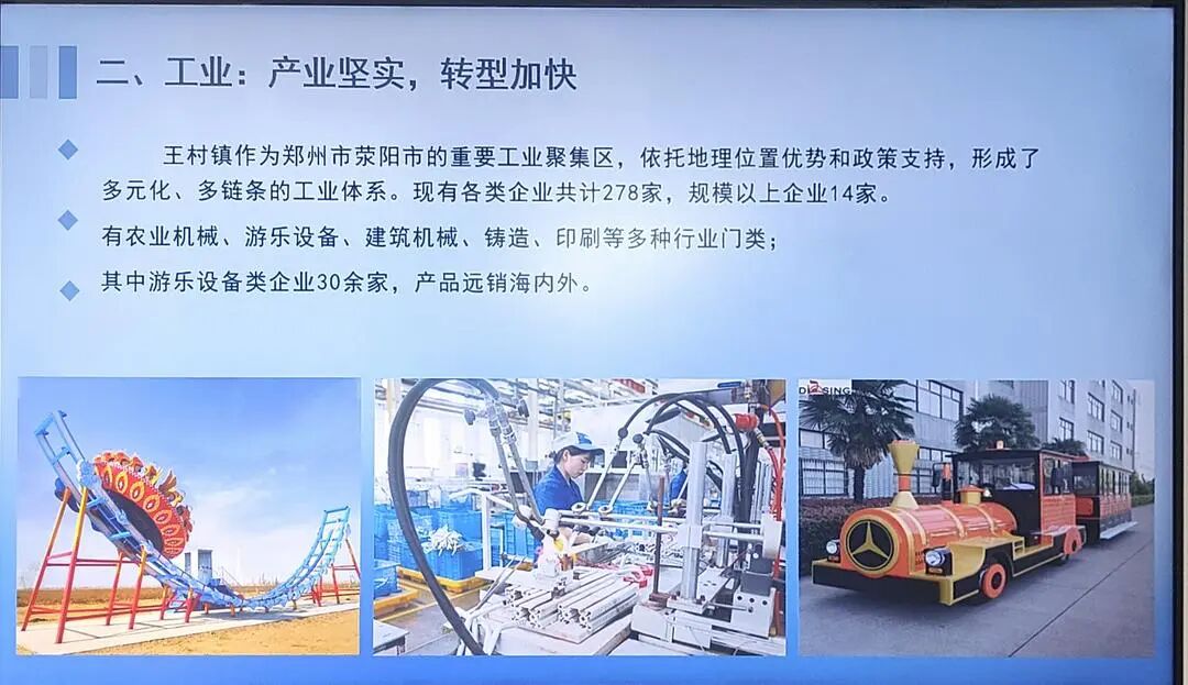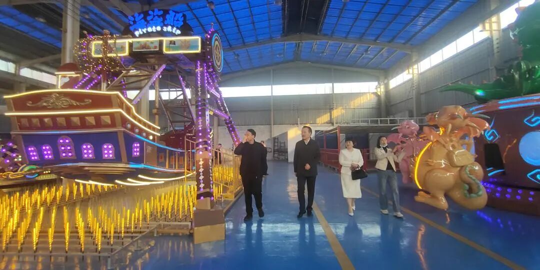 在王村鎮(zhèn)產(chǎn)業(yè)園區(qū),考察團(tuán)在鎮(zhèn)黨委副書(shū)記、鎮(zhèn)長(zhǎng)杜英豪陪同下參觀了鄭州樂(lè)之翔&龍慧游樂(lè)設(shè)備展銷(xiāo)中心。琳瑯滿目的游樂(lè)設(shè)施,彰顯了滎陽(yáng)作為國(guó)內(nèi)重要游樂(lè)設(shè)備產(chǎn)業(yè)基地的雄厚實(shí)力。