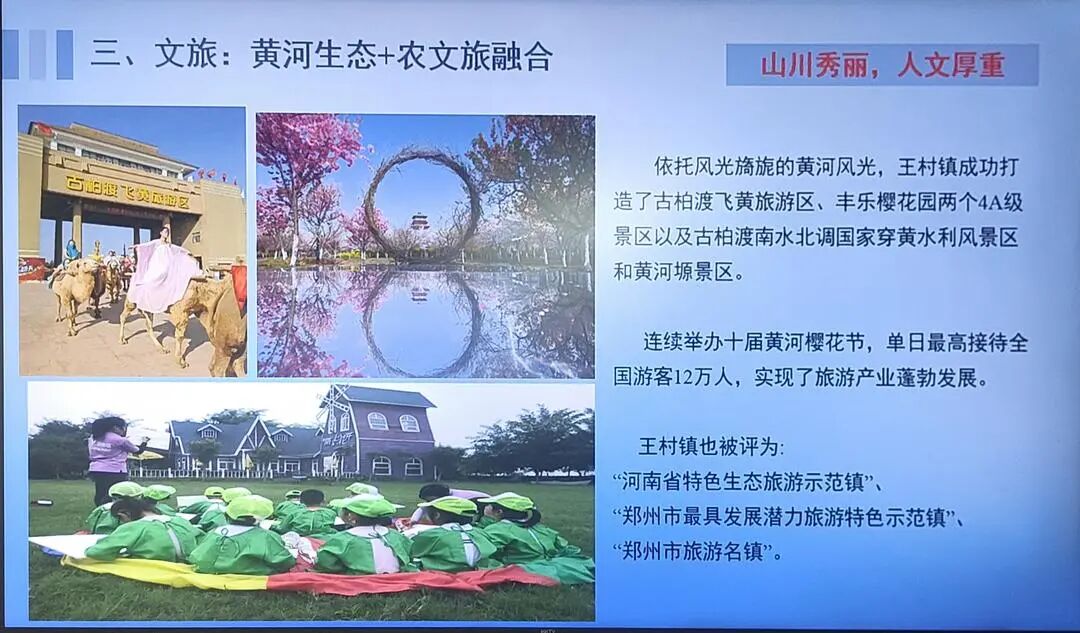會(huì)議伊始,任燕俠書(shū)記致辭歡迎并生動(dòng)介紹了王村鎮(zhèn)深厚的歷史底蘊(yùn)。王村鎮(zhèn)下轄的王留村,相傳原名"七戶(hù)村"。據(jù)地方記載,李世民在虎牢之戰(zhàn)期間曾在此地駐扎留宿,后為紀(jì)念此事,村子更名為"王留村",后簡(jiǎn)化為"王村",并成為鎮(zhèn)名。在櫻花園景區(qū)附近有個(gè)孤柏渡景區(qū),相傳秦王李世民率領(lǐng)大軍路過(guò)孤柏嘴時(shí),恰逢天降大雨,將士們只好在這棵古柏樹(shù)下躲避。因這棵古老的柏樹(shù)樹(shù)冠高大,枝葉繁茂密實(shí),雨后將士們發(fā)現(xiàn)自己的戰(zhàn)袍沒(méi)有一個(gè)被淋濕,秦王李世民很是稱(chēng)奇,于是便封這棵千年老柏樹(shù)為“千歲靈根"。從唐代秦王李世民在此屯兵的歷史典故,到古柏渡口千年流傳的傳說(shuō),勾勒出一幅綿延千年的歷史畫(huà)卷。任書(shū)記特別強(qiáng)調(diào),昔日的軍事要沖、黃河古渡,如今已發(fā)展成為在現(xiàn)代化農(nóng)業(yè)、游樂(lè)設(shè)備制造、文旅產(chǎn)業(yè)融合及美麗鄉(xiāng)村建設(shè)等方面取得顯著成就的魅力新鎮(zhèn),古今交匯,展現(xiàn)出蓬勃的時(shí)代生機(jī)。