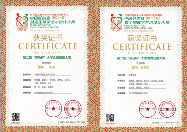 第二十屆中國好創(chuàng)意暨全國數(shù)字藝術(shù)設(shè)計(jì)大賽——第二屆“河馬杯”大學(xué)生微短劇大賽評(píng)選結(jié)果正式揭曉。鄭州智能科技職業(yè)學(xué)院傳媒學(xué)院融媒體技術(shù)與運(yùn)營專業(yè)學(xué)生在普通微短劇組別中脫穎而出,斬獲國家級(jí)三等獎(jiǎng)兩項(xiàng)。