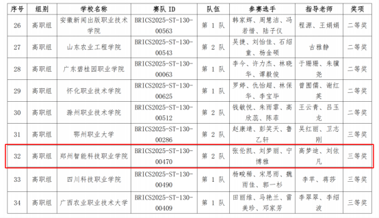 2025一帶一路暨金磚國家技能發(fā)展與技術(shù)創(chuàng)新大賽之首屆農(nóng)產(chǎn)品供應(yīng)鏈管理賽項(xiàng)全國總決賽結(jié)果正式揭曉。鄭州智能科技職業(yè)學(xué)院商學(xué)院24級(jí)現(xiàn)代物流管理專業(yè)的張倫凱、劉夢(mèng)麗、寧博雅3位同學(xué),在高夢(mèng)迪、劉依凡兩位老師的指導(dǎo)下,憑借扎實(shí)的專業(yè)功底和默契的團(tuán)隊(duì)協(xié)作,斬獲全國總決賽高職組三等獎(jiǎng)。