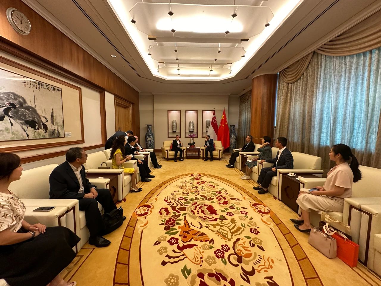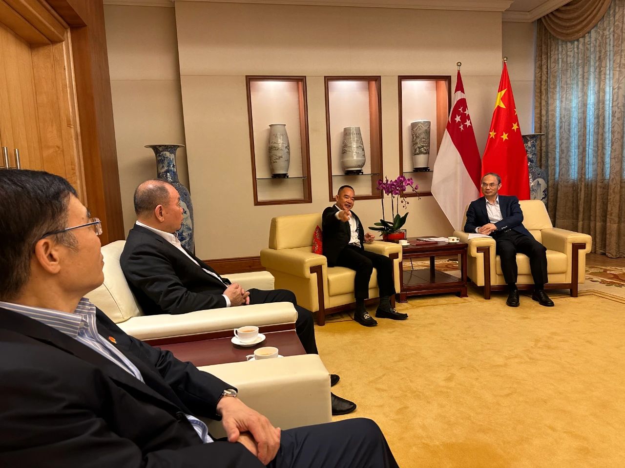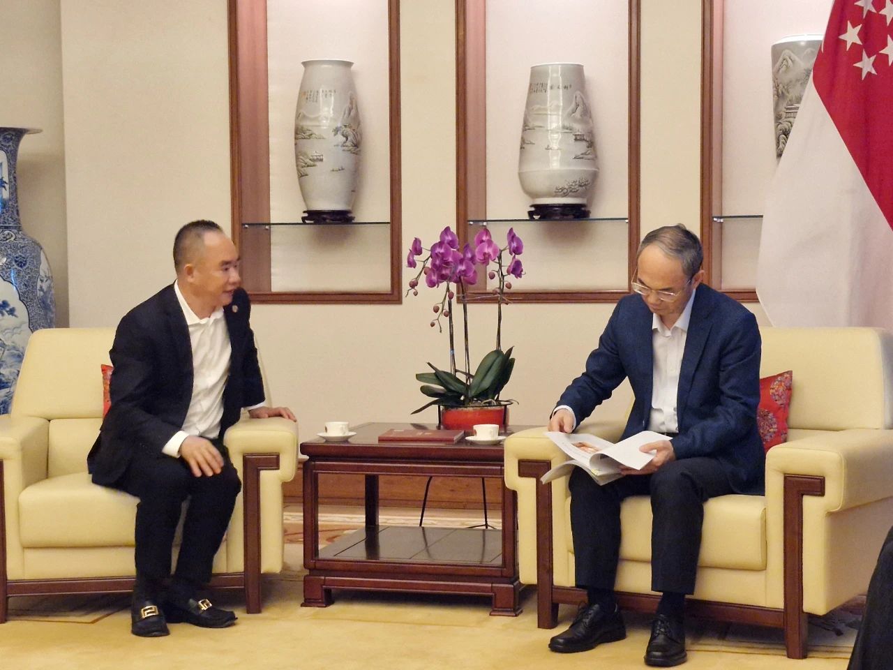6月14日上午,省僑商會名譽會長、華源會王泉成會長攜副會長吳建省、戴世巖博士、曾珍、秘書長黃智勇教授、財政楊孝義、藝術(shù)團長周筱宛、理事莫開斯和常任秘書張鎧瑜赴中國駐新加坡使館拜訪中華人民共和國駐新加坡共和國特命全權(quán)大使曹忠明。參加會見的還有中國駐新加坡使館朱憬公參和張琳領(lǐng)事。