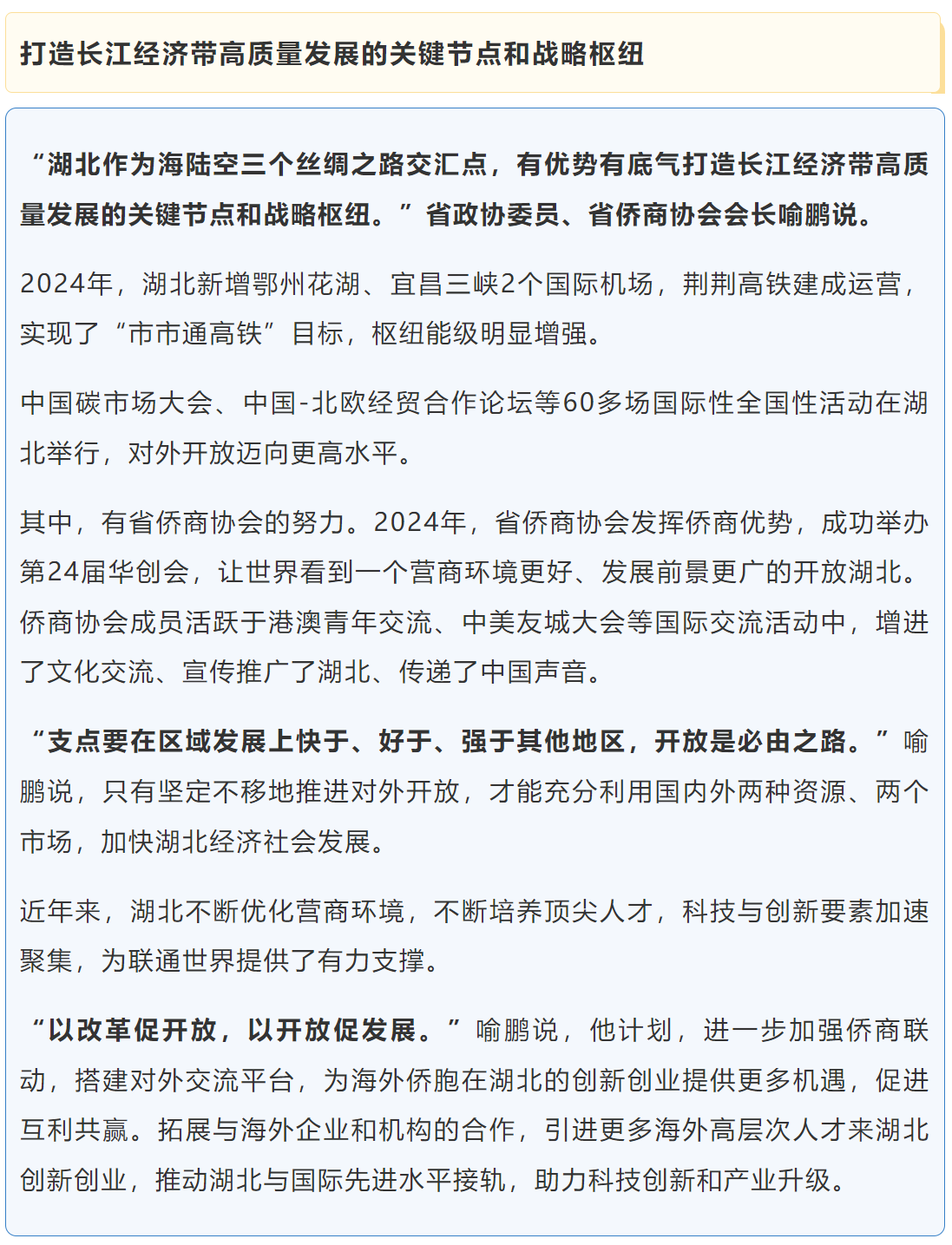 湖北省兩會(huì)正在召開。在這樣的時(shí)間節(jié)點(diǎn),湖北發(fā)出明確信號(hào):堅(jiān)定不移沿著習(xí)近平總書記指引的方向,把全部工作向“支點(diǎn)建設(shè)”聚焦聚力,把“支點(diǎn)建設(shè)”的旗幟舉得更高更穩(wěn)。