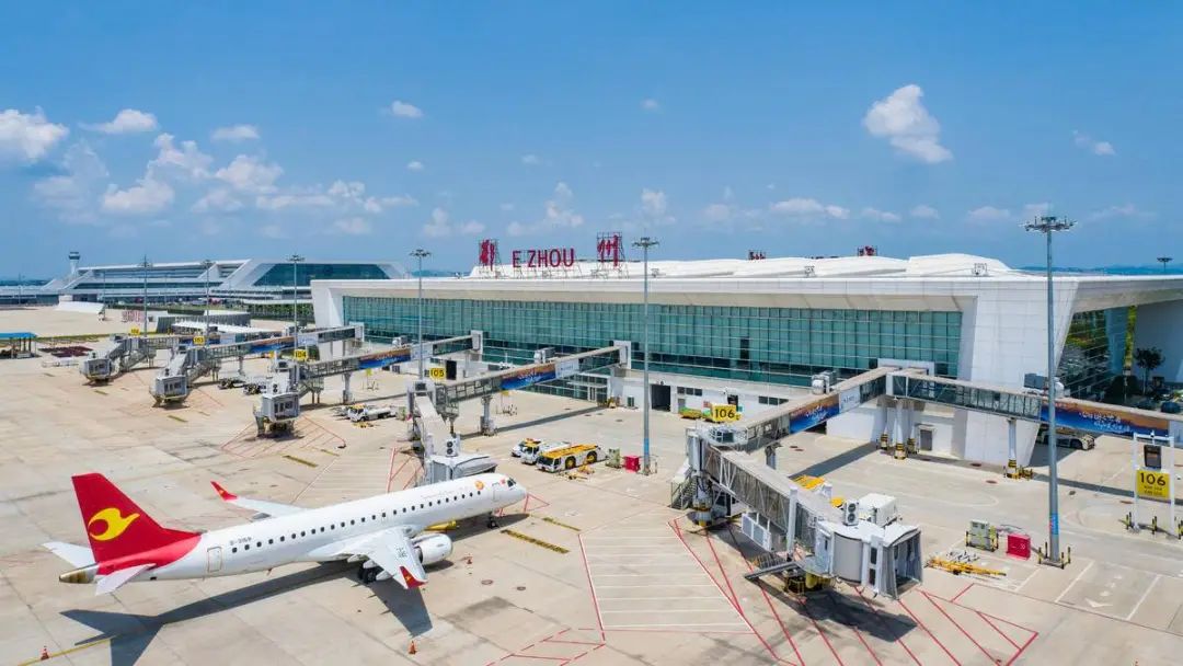 一架天津航空的民航客機(jī)??吭诙踔莼êC(jī)場(chǎng)航站樓。(湖北日?qǐng)?bào)全媒記者 任勇 通訊員 王星予 攝)