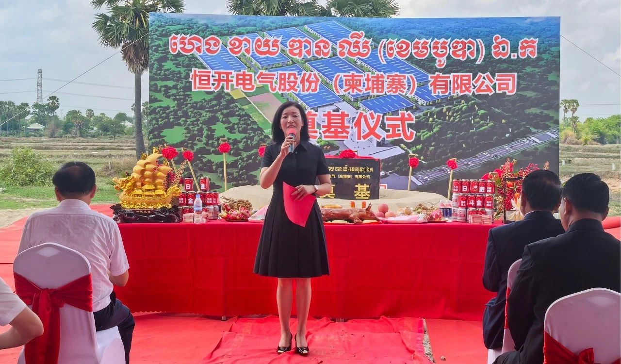 5月18日上午,代表團(tuán)一行參加了恒開電氣(柬埔寨)成套設(shè)備制造廠的奠基儀式,毛冰花與中柬兩國的政府官員、僑界人士等人共同揭牌。該項(xiàng)目由湖南省僑商會常務(wù)副會長李桂平投資建設(shè),致力于高端電氣設(shè)備本土化生產(chǎn),規(guī)劃用地20公頃,分三期建設(shè),項(xiàng)目建成后,將以柬埔寨為中心,輻射泰國、老撾、緬甸、越南等東盟各國市場,致力于成為區(qū)域內(nèi)領(lǐng)先的綜合能源解決方案提供商。毛冰花在致辭中表示,恒開電氣此次在柬埔寨建廠是響應(yīng)“一帶一路”倡議的生動實(shí)踐,不僅為企業(yè)自身拓展了發(fā)展空間,也為中柬經(jīng)貿(mào)合作搭建了新橋梁。她強(qiáng)調(diào),湖南省僑聯(lián)和僑商會將繼續(xù)發(fā)揮橋梁紐帶作用,助力更多湖南企業(yè)“走出去”,讓“中國智造”和“湖湘品牌”在國際舞臺上綻放光彩。隨后,代表團(tuán)參觀了華清國際學(xué)校,與校方就教育合作展開座談,探討引入湖南優(yōu)質(zhì)教育資源的可能性。