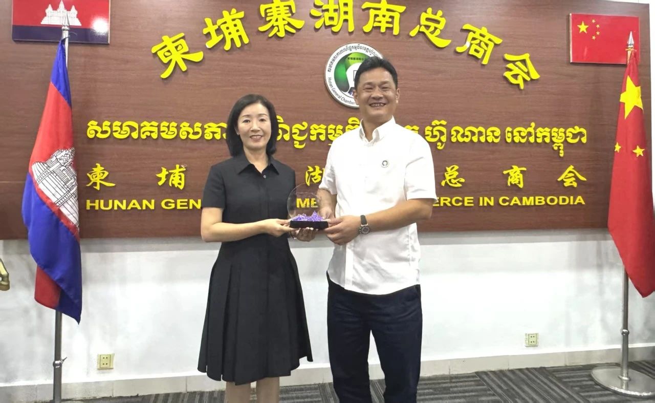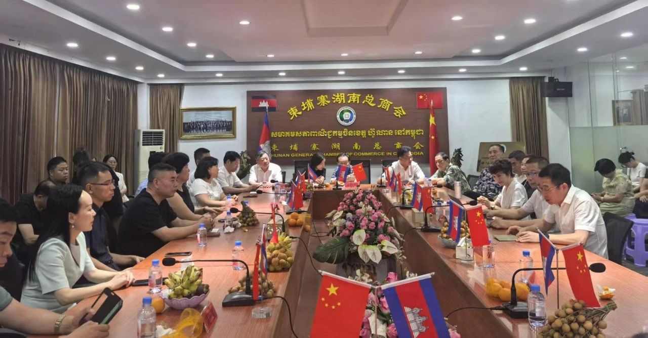 5月18日下午,代表團(tuán)還拜訪柬埔寨湖南總商會,召開湘籍會員企業(yè)家座談會,與會代表圍繞柬埔寨市場機(jī)遇、跨境貿(mào)易風(fēng)險等議題建言獻(xiàn)策,毛冰花會長勉勵僑商“抱團(tuán)取暖”,強(qiáng)化產(chǎn)業(yè)鏈協(xié)同,共同應(yīng)對國際經(jīng)貿(mào)挑戰(zhàn)。