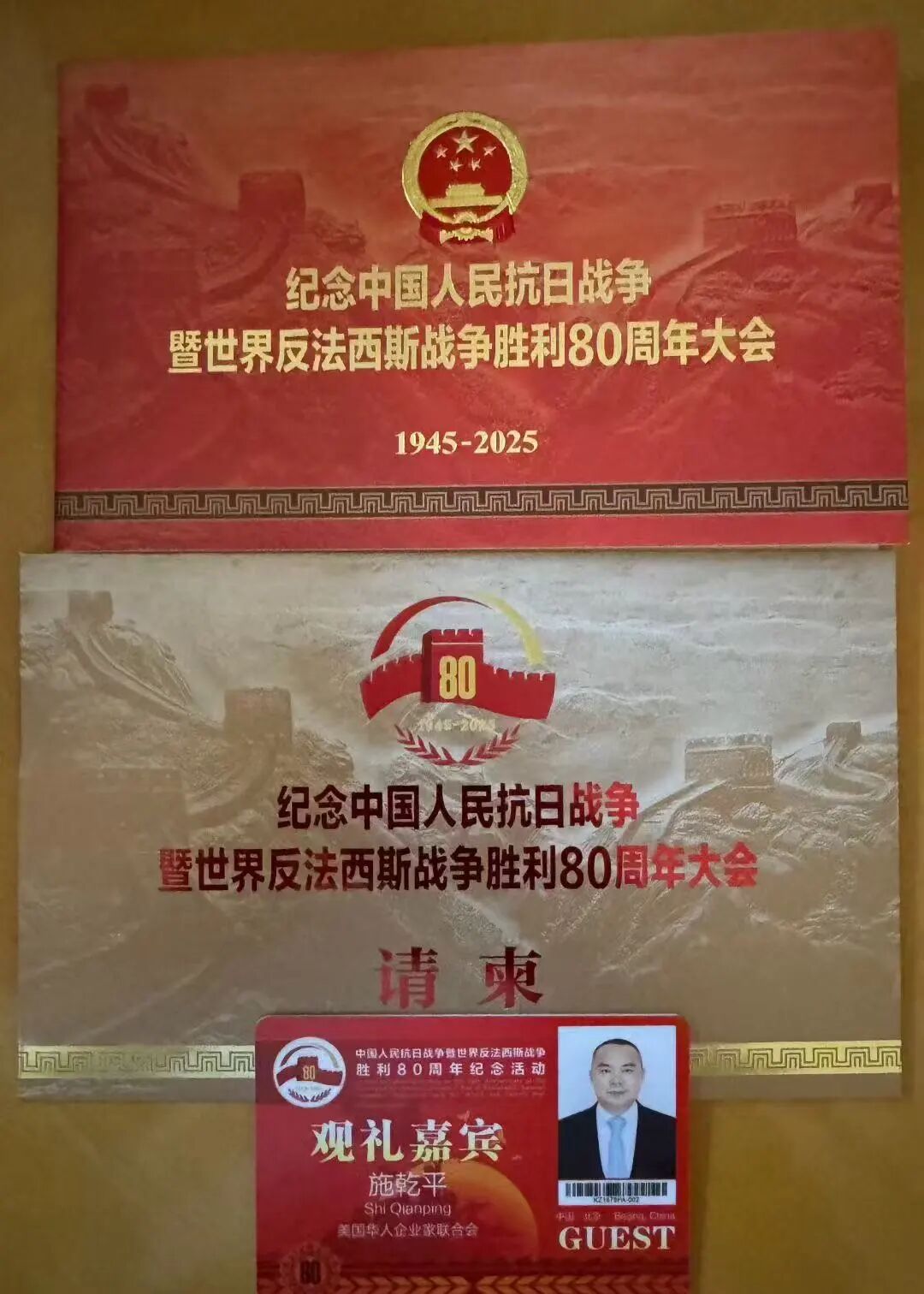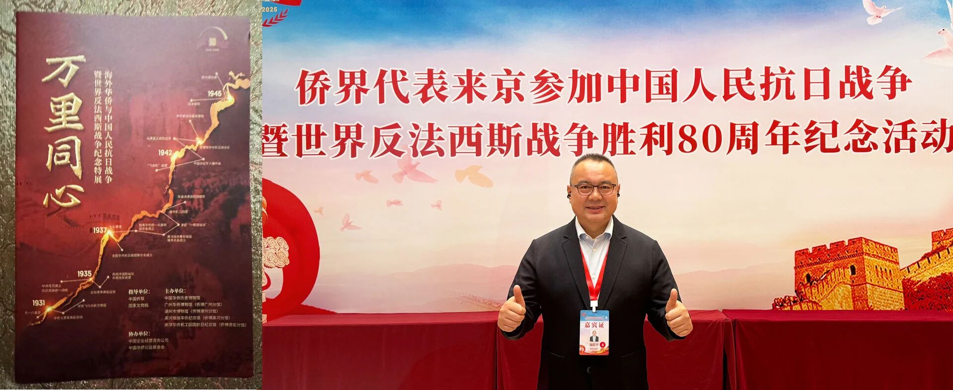 全國(guó)政協(xié)委員、致公黨中央委員、中國(guó)僑聯(lián)常委、中國(guó)僑商聯(lián)合會(huì)監(jiān)事長(zhǎng)、歐美同學(xué)會(huì)東南亞和南亞分會(huì)會(huì)長(zhǎng)、河南省僑商聯(lián)合會(huì)名譽(yù)會(huì)長(zhǎng)、德邁國(guó)際產(chǎn)業(yè)集團(tuán)董事長(zhǎng)施乾平作為僑界代表,獲邀赴京參加紀(jì)念中國(guó)人民抗日戰(zhàn)爭(zhēng)暨世界反法西斯戰(zhàn)爭(zhēng)勝利80周年閱兵觀(guān)禮活動(dòng)。期間,施乾平董事長(zhǎng)還先后參觀(guān)了抗日戰(zhàn)爭(zhēng)紀(jì)念館《為了民族解放和世界和平》主題展、華僑歷史博物館,參加了有關(guān)座談會(huì)等活動(dòng)。