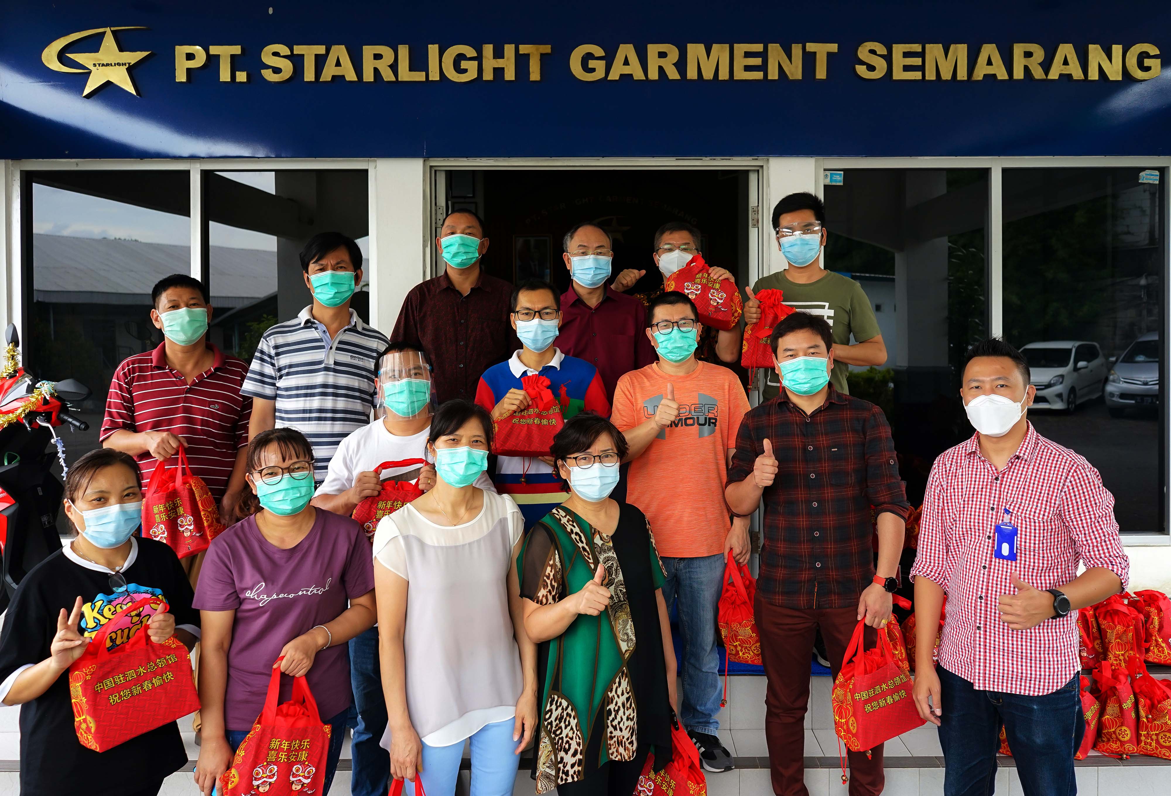 2月5日,印尼中爪哇省合資企業(yè)員工收到中國駐泗水總領(lǐng)館送來的“春節(jié)包”。(圖片來源:中新社)