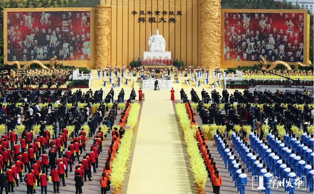 本屆黃帝故里拜祖大典由河南省人民政府、政協(xié)河南省委員會、國務院臺灣事務辦公室、中華全國歸國華僑聯(lián)合會、中華全國臺灣同胞聯(lián)誼會、中華炎黃文化研究會等單位聯(lián)合主辦,鄭州市人民政府、政協(xié)鄭州市委員會承辦,新鄭市人民政府執(zhí)行,突出宣傳建黨一百周年和開啟現(xiàn)代化建設新征程。港澳臺僑同胞代表和社會各界優(yōu)秀中華兒女代表,以及近百家新聞媒體約1000人在現(xiàn)場參加了拜祖大典。