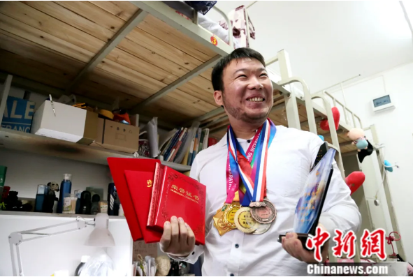 圖為李恩典展示自己獲得的獎牌獎狀。張遠 攝