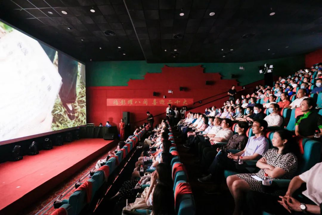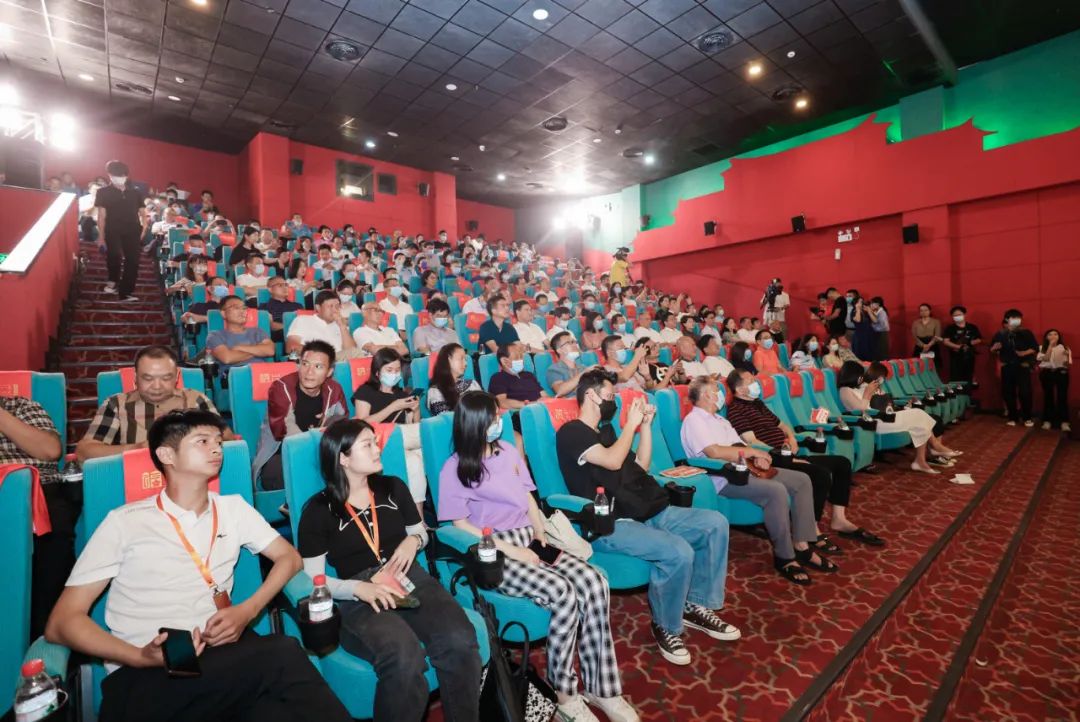 首映式上,省市有關(guān)部門領(lǐng)導與主創(chuàng)人員、影迷們共同觀影