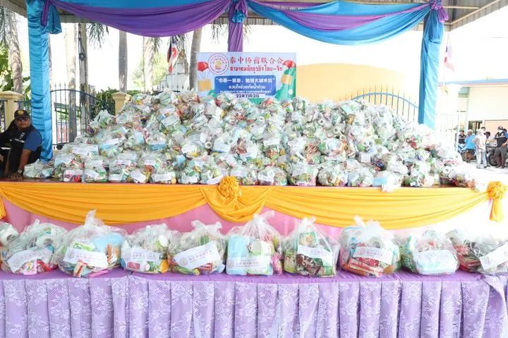 因受臺風影響,泰國文化古城大城府遭受特大洪澇災害,導致大量民房被淹,交通斷絕,給當?shù)鼐用裨斐闪藝乐氐膿p失。當?shù)鼐用裢嘎叮?ldquo;這是10年來最嚴重的一次水災。“洪災無情,人間有愛”。受災群眾的生活保障牽動著泰中僑商聯(lián)合會主席鄺錦榮博士的心。在泰中僑商聯(lián)合會主席鄺錦榮博士的帶領下,2022年11月2日組織了 “中泰一家親,馳援大城府水災”捐助活動。此次活動會員們熱情高漲、紛紛伸出援手捐贈愛心物資,為受災群眾奉獻自己的一份愛心。彰顯了中泰兩國共克時艱、同舟共濟的深厚友誼。