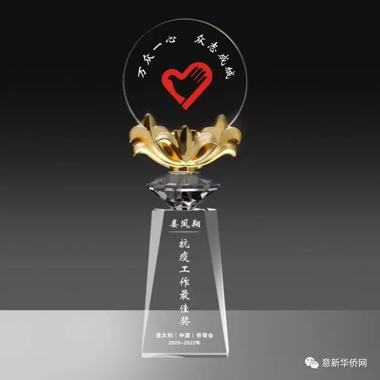 婁鳳翔會(huì)長非常感謝意大利(中國)僑商會(huì)頒發(fā)的抗疫工作獎(jiǎng)杯。婁鳳翔會(huì)長接過榮譽(yù)杯后表示,這是一份責(zé)任,我們將繼續(xù)努力,與各成員一道,遵守會(huì)規(guī),團(tuán)結(jié)一致抗擊疫情,銘記胡愛芬會(huì)長提倡的團(tuán)結(jié)、友誼無私奉獻(xiàn)精神!