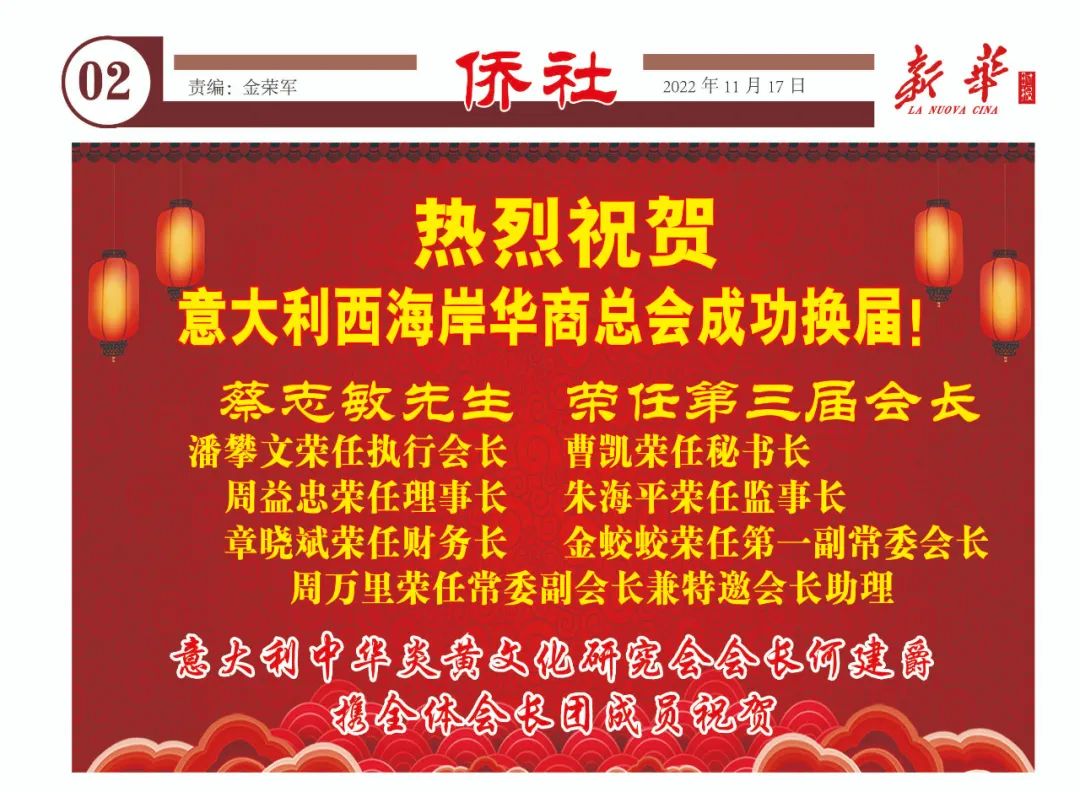 在換屆慶典之際,意大利僑團(tuán)會(huì)長(zhǎng)紛紛刊登報(bào)刊版面,以示祝賀,同慶盛典!