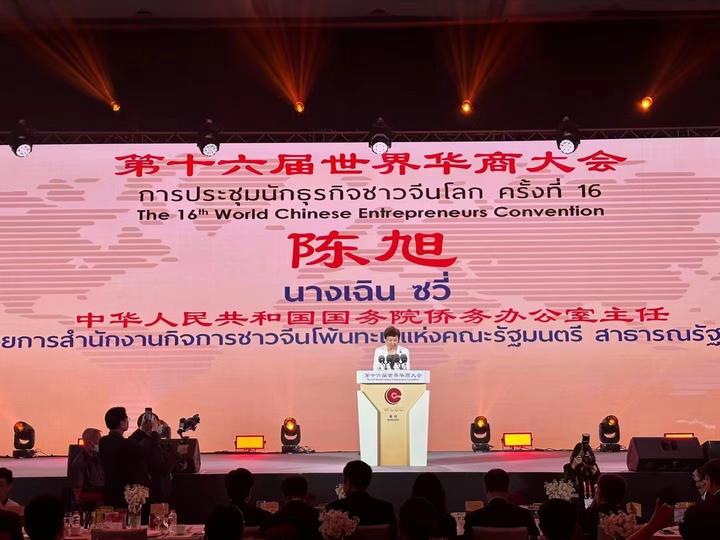 第16屆世界華商大會于當(dāng)?shù)貢r間24至26日在泰國曼谷舉行。6月24日晚,第16屆世界華商大會舉行歡迎大會,歡迎來自全球50多個國家的與會嘉賓。中國國務(wù)院僑務(wù)辦公室主任陳旭出席歡迎大會并致辭。