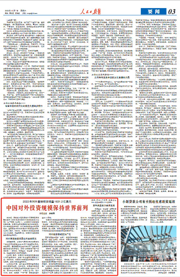 《公報(bào)》顯示,中國(guó)對(duì)外直接投資流量連續(xù)11年列全球前三,連續(xù)7年占全球份額超過一成。2022年末,中國(guó)對(duì)外直接投資存量達(dá)2.75萬億美元,連續(xù)6年排名全球前三。