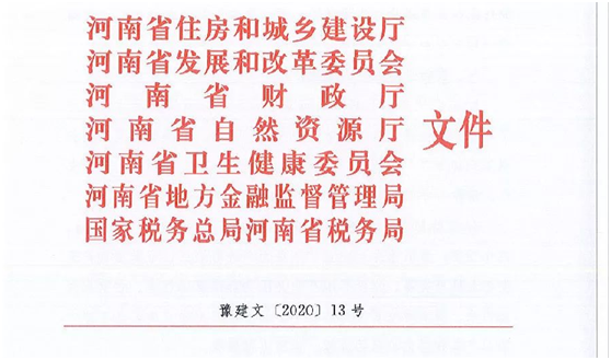 河南省住房和城鄉(xiāng)建設(shè)廳、河南省發(fā)展和改革委員會(huì)、河南省財(cái)政廳、河南省自然資源廳、河南省衛(wèi)生健康委員會(huì)、河南省地方金融監(jiān)督管理局、國家稅務(wù)總局河南省稅務(wù)局關(guān)于應(yīng)對(duì)新冠肺炎疫情影響防范和化解房地產(chǎn)市場風(fēng)險(xiǎn)的若干意見