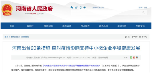 河南省應(yīng)對疫情影響支持中小微企業(yè)