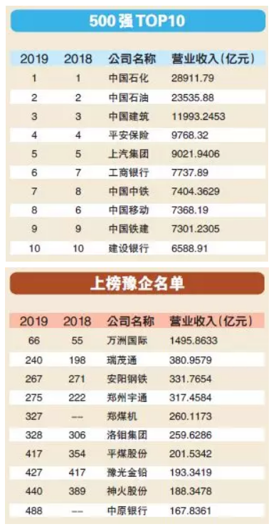 ▌最新《財富》中國500強排行榜放榜 河南10家企業(yè)上榜