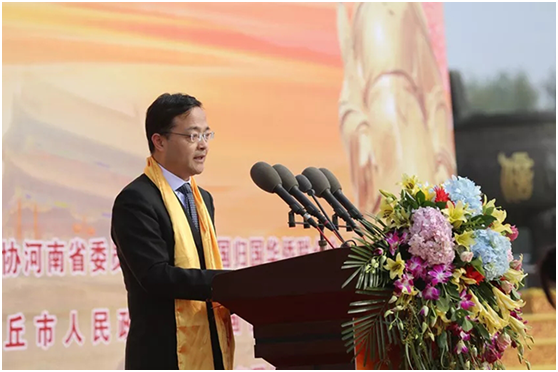 王戰(zhàn)營首先致辭,他代表商丘市委、市人大、市政府、市政協(xié)和全市921萬人民,向出席國際華商節(jié)的各級領導、各位貴賓和各界朋友,表示熱烈歡迎和衷心感謝。王戰(zhàn)營說,商丘是天下華商的根和源頭,傳承的是重德重義、誠信擔當、敢闖敢為、創(chuàng)新自強的華商精神。本次節(jié)會,我們以習近平新時代中國特色社會主義思想和黨的十九大精神為指導,以“齊聚華商源,共筑中國夢,爭做出彩人”為主題,進一步探尋商之源、傳承商文明、弘揚中華優(yōu)秀傳統(tǒng)文化,以新擔當展現新作為,著力叫響“華商之源、通達商丘”品牌,推動商丘高質量發(fā)展,為中原更加出彩做出新的更大貢獻。我們誠摯邀請大家多來商丘、常來商丘,從華夏文明的起點出發(fā),游古都城,讀圣賢書,尋華夏根,做出彩人,逐中國夢!