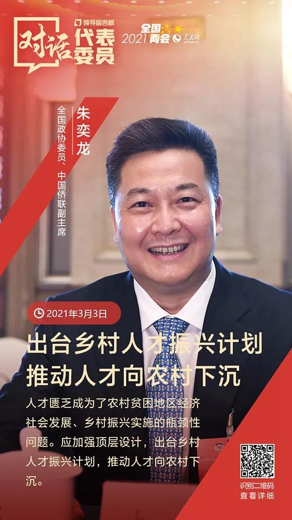 “今年年初電視劇《山海情》的熱播,展示了我國(guó)貧困地區(qū)廣大干部群眾艱苦奮斗的精神,體現(xiàn)了既要扶‘智’也要扶‘志’的寶貴扶貧經(jīng)驗(yàn)。但目前農(nóng)村勞動(dòng)力缺乏、人才匱乏的窘境還沒有得到有效解決。”在今年的全國(guó)兩會(huì)中,全國(guó)政協(xié)委員、中國(guó)僑聯(lián)副主席、中國(guó)僑商聯(lián)合會(huì)常務(wù)副會(huì)長(zhǎng)朱奕龍?zhí)峤涣岁P(guān)于推進(jìn)鄉(xiāng)村人才振興的建議。