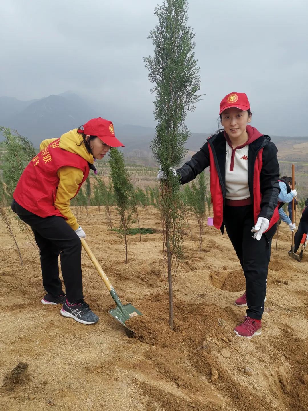 植樹現(xiàn)場一片熱火朝天的忙碌景象。大家揮鍬鏟土、培植樹苗,合力在陡峭的山坡上栽種樹苗30余株。一株株樹苗沐浴著春光,迎風(fēng)挺立,綠色已成為山坡上最靚麗的色彩。