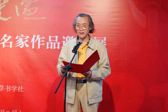 中國(guó)標(biāo)準(zhǔn)草書(shū)學(xué)社社長(zhǎng)徐利明在致辭中介紹,中國(guó)標(biāo)準(zhǔn)草書(shū)學(xué)社由民國(guó)元老、著名書(shū)法家于右任先生創(chuàng)建于1932年,在北京恢復(fù)建社至今30余年來(lái),致力于聯(lián)系海內(nèi)外與于右任先生以及草書(shū)(標(biāo)準(zhǔn)草書(shū))有歷史淵源的團(tuán)體與人士,開(kāi)展國(guó)際交流。本次書(shū)畫(huà)展,中國(guó)標(biāo)準(zhǔn)草書(shū)學(xué)社發(fā)揮本社成員大多為全國(guó)知名書(shū)家以至著名書(shū)家的優(yōu)勢(shì),使作品的政治性和藝術(shù)性、歷史性和時(shí)代性相生相發(fā),和諧統(tǒng)一,用筆墨深情地謳歌中國(guó)共產(chǎn)黨波瀾壯闊的百年奮斗歷程和輝煌成就。
