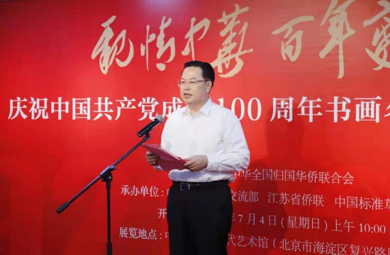 謳歌百年歷程,致敬豐功偉績(jī)。7月4日,“親情中華·百年變遷”慶祝中國(guó)共產(chǎn)黨成立100周年書(shū)畫(huà)名家邀請(qǐng)展在北京中華世紀(jì)壇當(dāng)代藝術(shù)館隆重開(kāi)幕。中國(guó)僑聯(lián)主席萬(wàn)立駿出席開(kāi)幕式并講話(huà)。