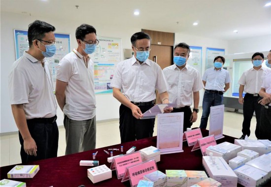在廣州市黃埔區(qū),萬立駿一行來到呼吸疾病國(guó)家重點(diǎn)實(shí)驗(yàn)室產(chǎn)學(xué)研基地調(diào)研。該基地是鐘南山院士領(lǐng)導(dǎo)的呼吸疾病國(guó)家重點(diǎn)實(shí)驗(yàn)室、國(guó)家呼吸系統(tǒng)疾病臨床醫(yī)學(xué)中心的產(chǎn)學(xué)研和成果轉(zhuǎn)化平臺(tái)。萬立駿聽取了基地負(fù)責(zé)人關(guān)于園區(qū)建設(shè)管理、科研成果轉(zhuǎn)化落地、科技企業(yè)孵化、醫(yī)藥研發(fā)、醫(yī)療健康服務(wù)等工作介紹,看望了支援廣州科技抗疫的僑界創(chuàng)新團(tuán)隊(duì),仔細(xì)了解新冠核酸/抗體系列產(chǎn)品、新冠肺炎疫苗(重組人5型腺病毒載體)、新型冠狀病毒重組蛋白疫苗、呼吸系統(tǒng)病原體診斷試劑等產(chǎn)品的研發(fā)、生產(chǎn)和應(yīng)用情況,與歸僑科技人員和海歸企業(yè)代表座談。