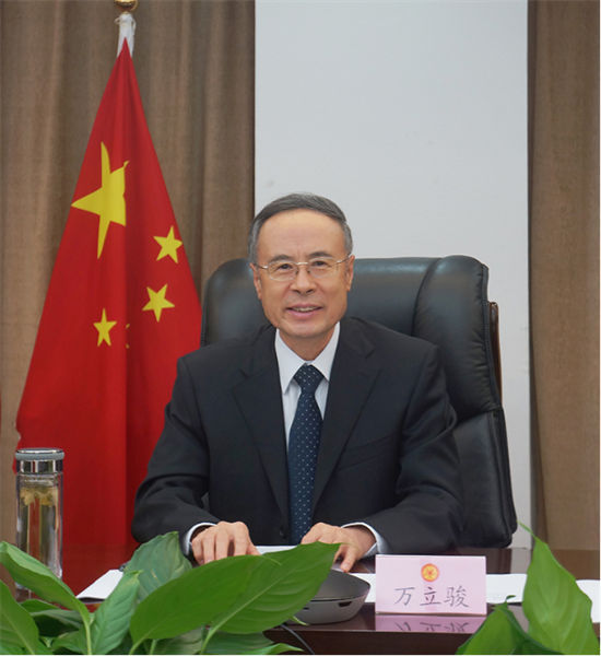 萬(wàn)立駿希望廣大僑胞充分發(fā)揮獨(dú)特優(yōu)勢(shì),匯聚同圓共享中華民族偉大復(fù)興中國(guó)夢(mèng)的磅礴力量。一是持續(xù)做好抗疫,確保自身安全。牢牢繃住疫情防控這根弦不放松,遵守住在國(guó)的疫情防控措施,結(jié)合自身情況,融入住在國(guó)抗疫工作,積極配合“春苗行動(dòng)”。二是建設(shè)和諧僑社,服務(wù)海外僑胞。繼承和弘揚(yáng)中華傳統(tǒng)美德,用才干、智識(shí)、信心和情懷引領(lǐng)僑社團(tuán)結(jié)和睦、行穩(wěn)致遠(yuǎn),展示大國(guó)僑民良好形象。三是講好中國(guó)故事,營(yíng)造良好環(huán)境。讓世界各國(guó)民眾更多了解中國(guó)追求共同發(fā)展、合作共贏(yíng)的行動(dòng),增進(jìn)對(duì)生命至上、人民至上的價(jià)值認(rèn)同,夯實(shí)中外友好的民意基礎(chǔ)。四是參與中國(guó)發(fā)展,同圓共享夢(mèng)想。通過(guò)參加網(wǎng)上進(jìn)博會(huì)、廣交會(huì)、服貿(mào)會(huì)等多種方式積極踐行新發(fā)展理念,參與構(gòu)建新發(fā)展格局,推動(dòng)實(shí)現(xiàn)高質(zhì)量發(fā)展,共同開(kāi)啟全面建設(shè)社會(huì)主義現(xiàn)代化國(guó)家新征程。五是當(dāng)好文明使者,推動(dòng)構(gòu)建人類(lèi)命運(yùn)共同體。繼續(xù)積極助力“一帶一路”建設(shè)深入開(kāi)展,鑄牢中華民族命運(yùn)共同體意識(shí),繼續(xù)為推動(dòng)構(gòu)建人類(lèi)命運(yùn)共同體添磚加瓦。