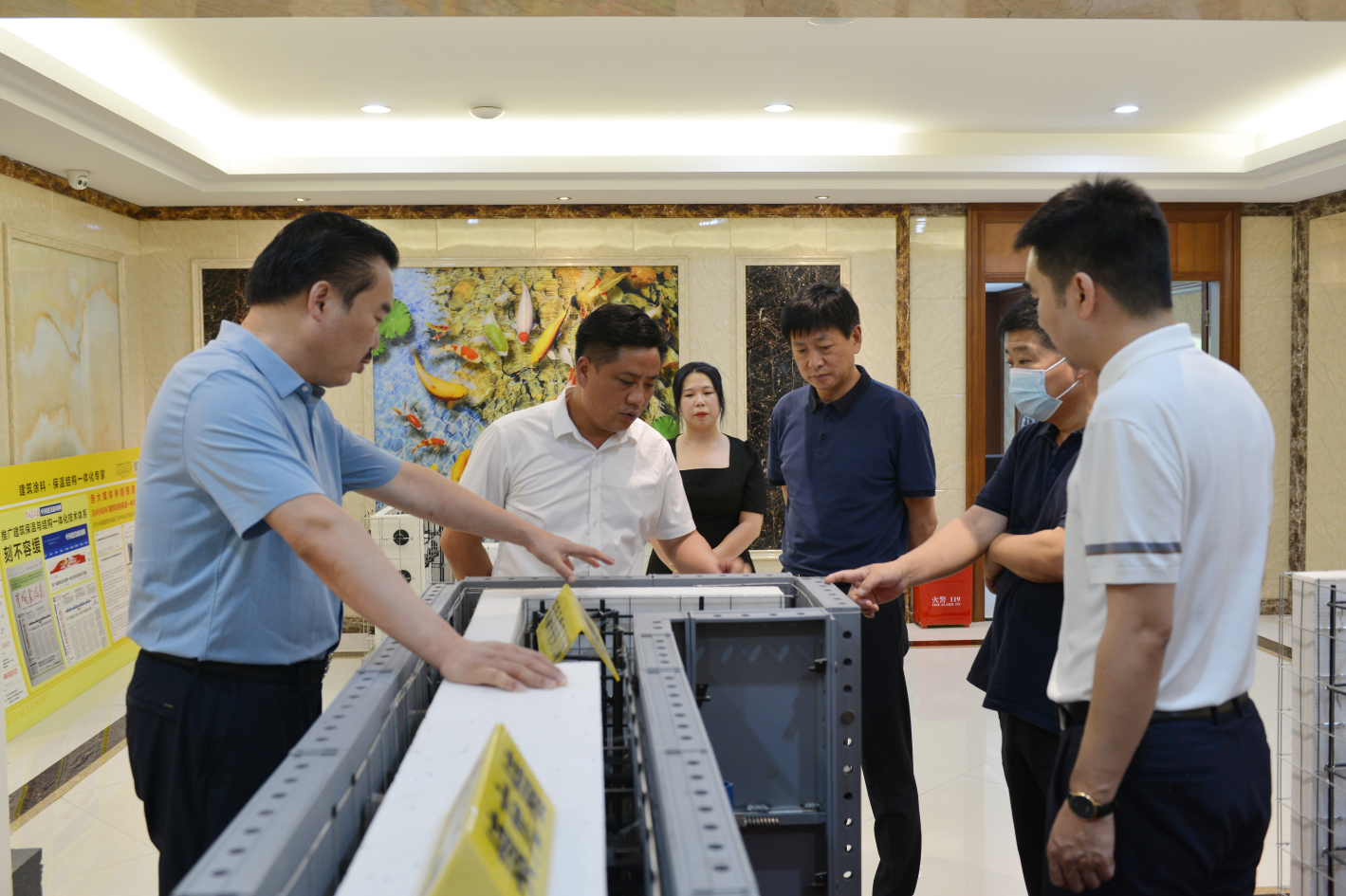 在德嘉麗集團(tuán)公司總裁李浩民的帶領(lǐng)下,一行人參觀考察了河南省德嘉麗集團(tuán)的展廳,通過(guò)李浩民的介紹,大家對(duì)德嘉麗集團(tuán)的產(chǎn)品體系及產(chǎn)品特色、優(yōu)勢(shì)有了初步了解,對(duì)德嘉麗集團(tuán)的實(shí)力有了整體認(rèn)知。