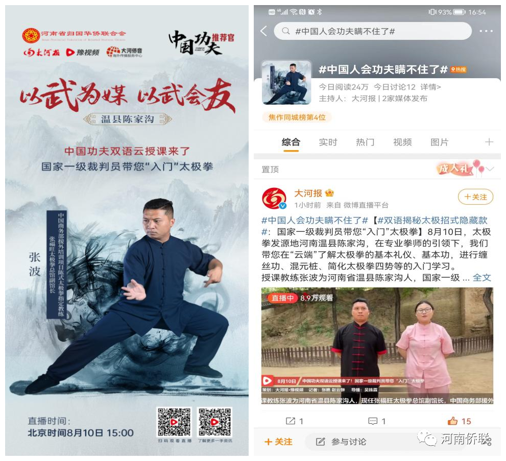 據(jù)悉,此次活動是省僑聯(lián)聯(lián)動省政府新聞辦、省文旅廳傾力打造的年度功夫文化盛典-“大河之南·功夫之源”中國功夫文化傳播行動中的重要一環(huán),旨在依托新媒體傳播矩陣,創(chuàng)新挖掘河南省華僑國際文化交流基地資源優(yōu)勢,以太極拳、少林功夫等享譽(yù)全球的功夫名片為主要內(nèi)容,在云端設(shè)計集教學(xué)、推廣于一體的中國功夫推薦官活動,為海內(nèi)外僑胞和功夫愛好者提供沉浸式、互動式、多樣化的功夫體驗(yàn),推動形成關(guān)注中國功夫,體會中原文化的良好局面。