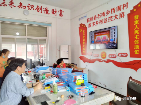 省僑聯(lián)駐漯河市臨潁縣石橋鄉(xiāng)橋南村第一書記邱建鋒,組織村“兩委”班子及駐村工作組隊(duì)員,集中收看二十大盛況。