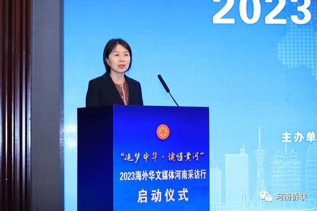 啟動(dòng)儀式上,與會(huì)嘉賓共同觀看了河南省情宣傳片。河南省人民政府新聞辦公室主任平萍在致辭中向活動(dòng)的舉辦表示熱烈祝賀,她講到,歷史上的河南,以古聞名!新時(shí)代的河南,以新出彩!古老的河南,歷史悠久、文化燦爛。是中華民族和華夏文明的重要發(fā)祥地,是世界華人宗祖之根、華夏歷史文明之源。隨著“文旅文創(chuàng)融合戰(zhàn)略”的深入實(shí)施,越來(lái)越多的朋友來(lái)河南看國(guó)寶、賞國(guó)風(fēng)、趕國(guó)潮,在“行走河南中讀懂中國(guó)”。今日的河南,創(chuàng)新涌動(dòng)、發(fā)展強(qiáng)勁。2022年經(jīng)濟(jì)總量突破6萬(wàn)億元,扛起了經(jīng)濟(jì)大省勇挑大梁的時(shí)代重任??罩薪z綢之路、陸上絲綢之路、網(wǎng)上絲綢之路、海上絲綢之路,四路協(xié)同,連通全球。河南的對(duì)外開(kāi)放越開(kāi)越大,越飛越高!未來(lái)的河南,奮勇?tīng)?zhēng)先,更加出彩。河南正牢記囑托,錨定“兩個(gè)確保”,實(shí)施“十大戰(zhàn)略”,堅(jiān)持把創(chuàng)新擺在發(fā)展的邏輯起點(diǎn)、現(xiàn)代化建設(shè)的核心位置,在奮力推進(jìn)中國(guó)式現(xiàn)代化建設(shè)河南實(shí)踐的道路上闊步前進(jìn)。她希望,海外華文媒體走進(jìn)河南,親身領(lǐng)略詩(shī)和遠(yuǎn)方的神奇交融,實(shí)地感受中原大地的蓬勃生機(jī),帶動(dòng)更多的人走進(jìn)河南、愛(ài)上河南、傳播河南、點(diǎn)贊河南!
