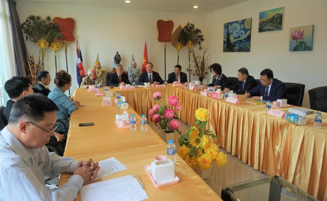 在泰中僑商聯(lián)合會(huì),會(huì)長(zhǎng)鄺錦榮向萬(wàn)立駿一行介紹了聯(lián)合會(huì)發(fā)展情況。萬(wàn)立駿說(shuō),團(tuán)結(jié)就是力量,無(wú)論是經(jīng)商辦企業(yè),還是做好商會(huì)工作,團(tuán)結(jié)都至關(guān)重要。他勉勵(lì)聯(lián)合會(huì)立足自身特點(diǎn),找準(zhǔn)發(fā)展方向,搭建更多平臺(tái),在團(tuán)結(jié)聯(lián)系新僑、促進(jìn)泰中僑商組織交流合作、增進(jìn)中泰友誼等方面發(fā)揮更大作用。