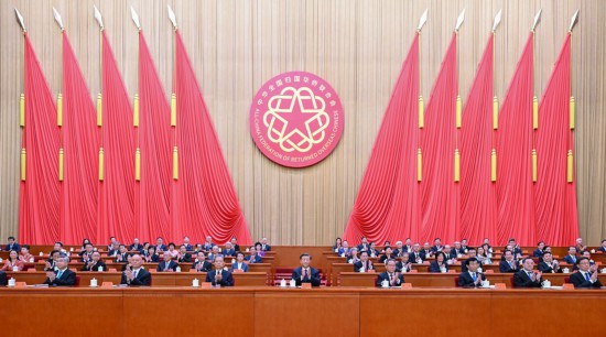 共青團中央書記處第一書記阿東代表中華全國總工會、中國共產(chǎn)主義青年團中央委員會、中華全國婦女聯(lián)合會、中國文學藝術(shù)界聯(lián)合會、中國作家協(xié)會、中國科學技術(shù)協(xié)會、中華全國臺灣同胞聯(lián)誼會、中國殘疾人聯(lián)合會向大會致賀詞。賀詞指出,各群團組織要牢記初心使命,相互學習、密切合作,發(fā)揚優(yōu)良傳統(tǒng)、發(fā)揮各自優(yōu)勢,共同開創(chuàng)新時代新征程黨的群團工作新局面。