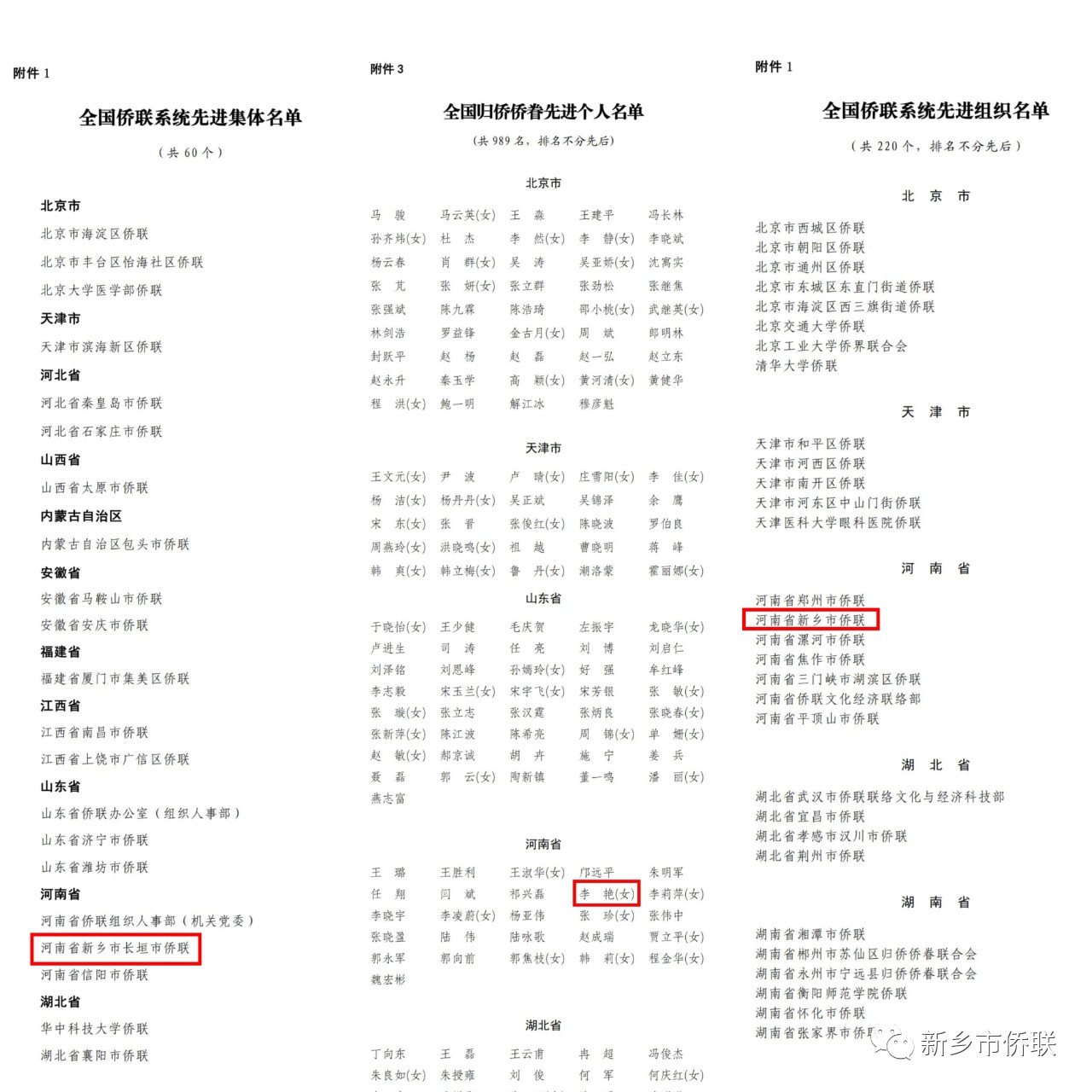 新鄉(xiāng)市僑界受表彰情況