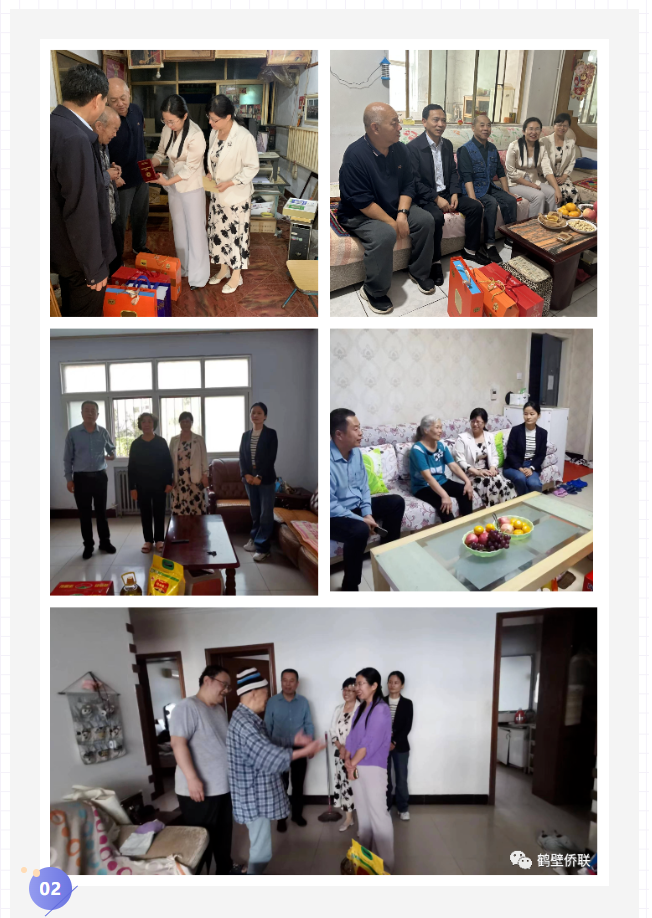 為堅持以人為本、為僑服務(wù),開創(chuàng)僑聯(lián)事業(yè)新局面,在中秋國慶雙節(jié)到來之際,鶴壁市僑聯(lián)慰問全市老歸僑、困難歸僑僑眷。9月26日,市僑聯(lián)主席袁江華,黨組成員、副主席付英一行4人,走訪慰問老歸僑、困難歸僑僑眷家庭,給他們送去節(jié)日美好的祝愿,并送上紀(jì)念章、慰問金和慰問品。