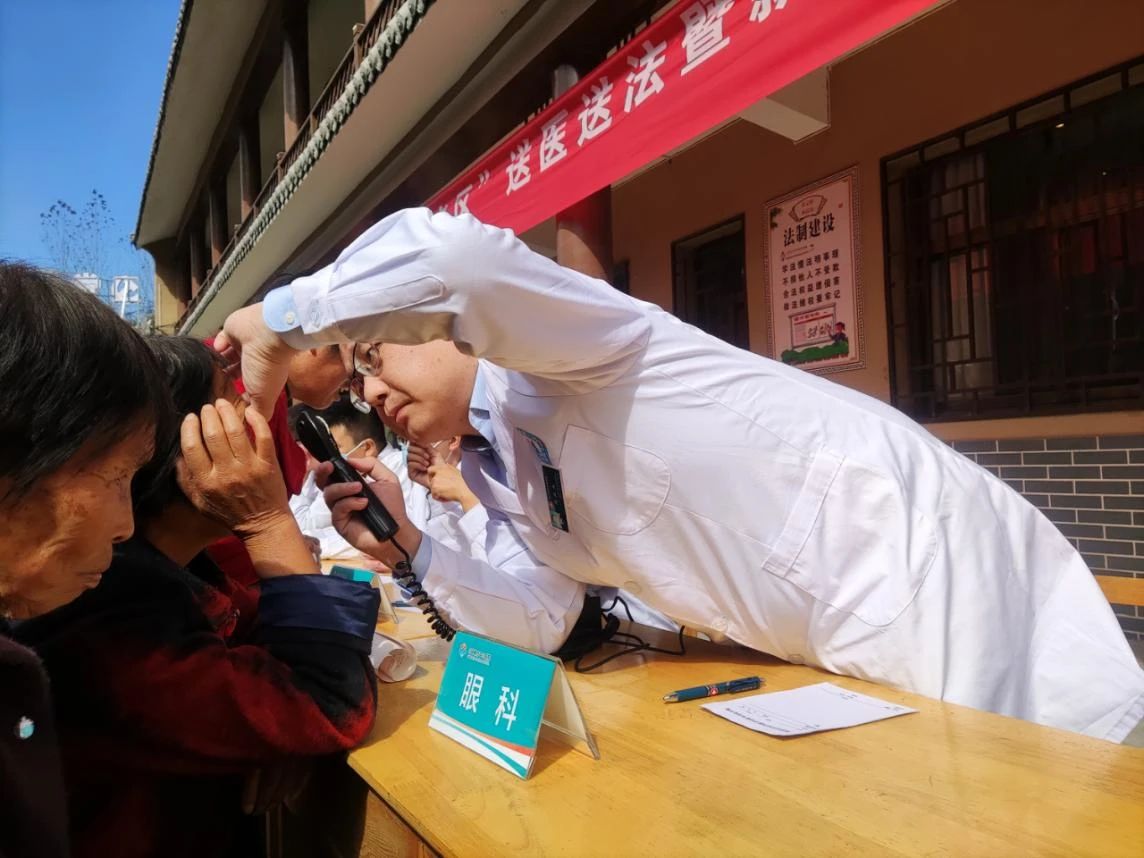 義診團隊遠赴山鄉(xiāng),香子坪村部人頭攢動。“吸氣、憋氣、正常呼吸”,體檢車上檢查人員一步步指導群眾拍攝胸片,臨時心電圖室門口排起了長隊,候診桌前醫(yī)生們熱情耐心詢問病癥、悉心檢查,開藥方、叮囑注意事項,將健康和溫暖送到基層百姓的心坎上。黨亞龍博士的眼科臨時診桌面前圍滿了群眾,“我看東西重影”“以前做過白內障手術”“眼睛總流淚”……黨亞龍博士認真聽群眾講述,不斷起身近距離檢查,給出詳細的診斷結果,一口水沒喝義診3個多小時。為給群眾提供最好的健康服務,現(xiàn)場義診結束后,心血管內科和神經內科的醫(yī)生還來到群眾徐天奇家中,詢問臥床老伴病情、查看身體狀況,并現(xiàn)場給病人子女打電話交待注意事項。