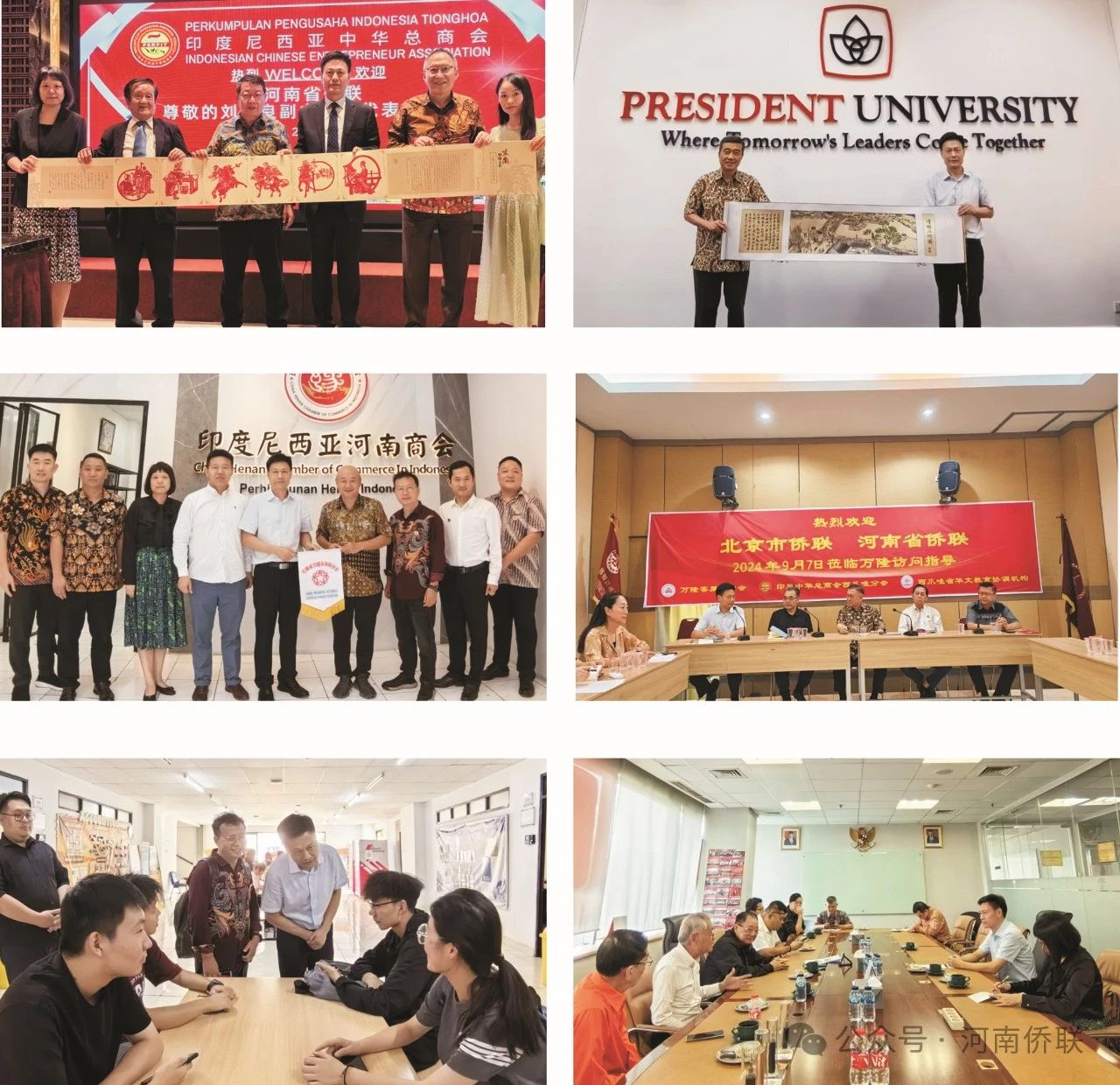 在印尼,劉智良一行到訪雅加達(dá)和萬隆,分別走訪了印尼中華總商會(huì)、印尼華裔總會(huì)、印尼河南商會(huì)、印尼總統(tǒng)大學(xué)、印尼萬隆客屬聯(lián)誼會(huì)和印尼中華總商會(huì)萬隆分會(huì),與當(dāng)?shù)貎S界代表和豫籍留學(xué)生深入交流,詳細(xì)了解僑團(tuán)創(chuàng)辦歷史、作用發(fā)揮及豫籍留學(xué)生的學(xué)習(xí)、生活情況。劉智良向大家轉(zhuǎn)達(dá)了省僑聯(lián)及家鄉(xiāng)人民的關(guān)心牽掛和親切問候,介紹了省情、僑情以及“中國僑商投資(河南)大會(huì)”“中國尋根之旅”夏令營等品牌活動(dòng)的開展。他指出,旅印尼僑胞依靠勤勞和智慧在海外立足、扎根、發(fā)展,作為中印尼兩國民間友好的使者,在團(tuán)結(jié)互助、服務(wù)社會(huì)、傳承文化、推動(dòng)中印尼民間經(jīng)貿(mào)文化交流等方面做了大量工作,為大家取得的成績感到高興。希望旅印尼僑胞利用融通中外、熟悉國際規(guī)則等優(yōu)勢,在推動(dòng)中印尼經(jīng)貿(mào)及各領(lǐng)域合作、共建“一帶一路”中發(fā)揮更大作用。劉智良表示,今年是中華人民共和國成立75周年。站在新的歷史起點(diǎn)上,省僑聯(lián)緊緊圍繞習(xí)近平總書記提出的“當(dāng)好海外僑胞和歸僑僑眷的貼心人,成為僑務(wù)工作的實(shí)干家”要求,全面貫徹落實(shí)第十一次全國僑代會(huì)精神,聚焦服務(wù)“兩個(gè)確保”、實(shí)施“十大戰(zhàn)略”、推進(jìn)“十大建設(shè)”等全省發(fā)展大局,秉持“以僑為本、為僑服務(wù)”宗旨,全面履行好僑聯(lián)“六大職能”,持續(xù)推進(jìn)“五化聯(lián)動(dòng)”,進(jìn)一步加強(qiáng)與各社團(tuán)合作與交流,共同維護(hù)海外華僑華人的利益,努力為海外僑胞回國投資興業(yè)、創(chuàng)新創(chuàng)業(yè)提供更加良好的條件。