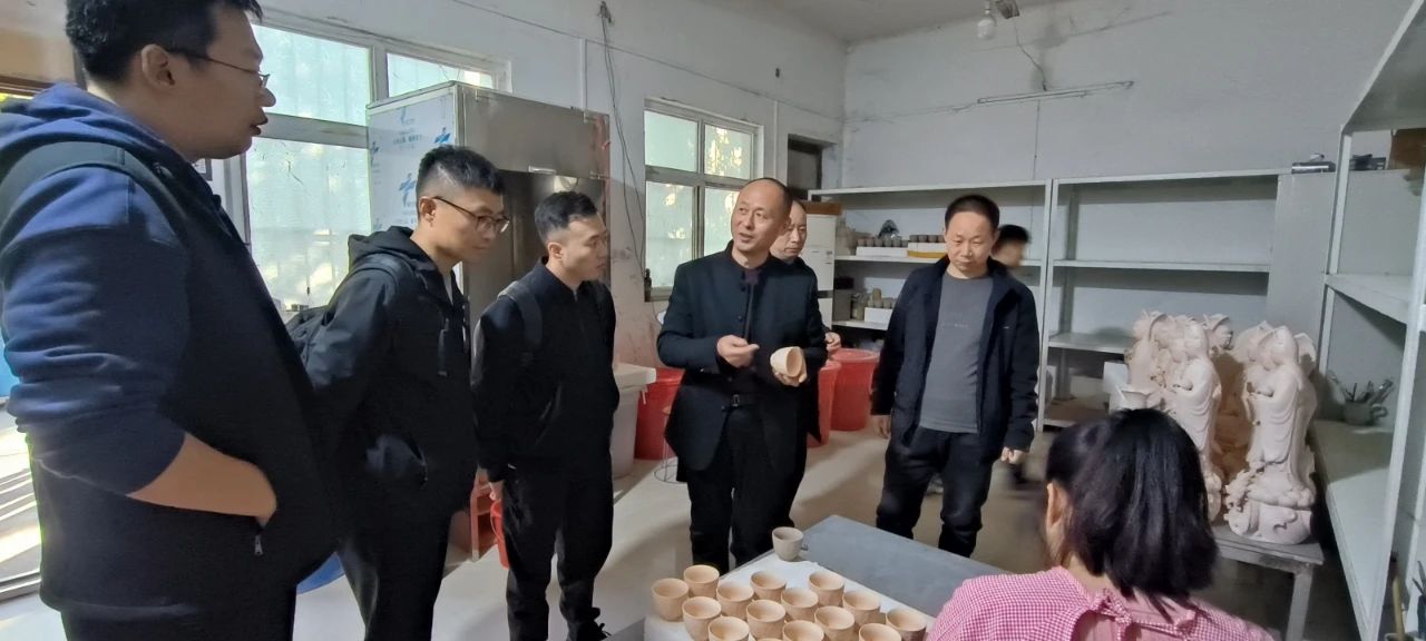 座談會(huì)后,李浩中陪同考察團(tuán)一行參觀了汝瓷作品展廳,實(shí)地察看汝瓷生產(chǎn)工坊,全面了解汝瓷生產(chǎn)的程序環(huán)節(jié),并仔細(xì)分享了汝瓷歷史文化淵源、傳承發(fā)展脈絡(luò)以及在現(xiàn)代社會(huì)的獨(dú)特價(jià)值,讓考察團(tuán)一行切身感受汝瓷的藝術(shù)美感。