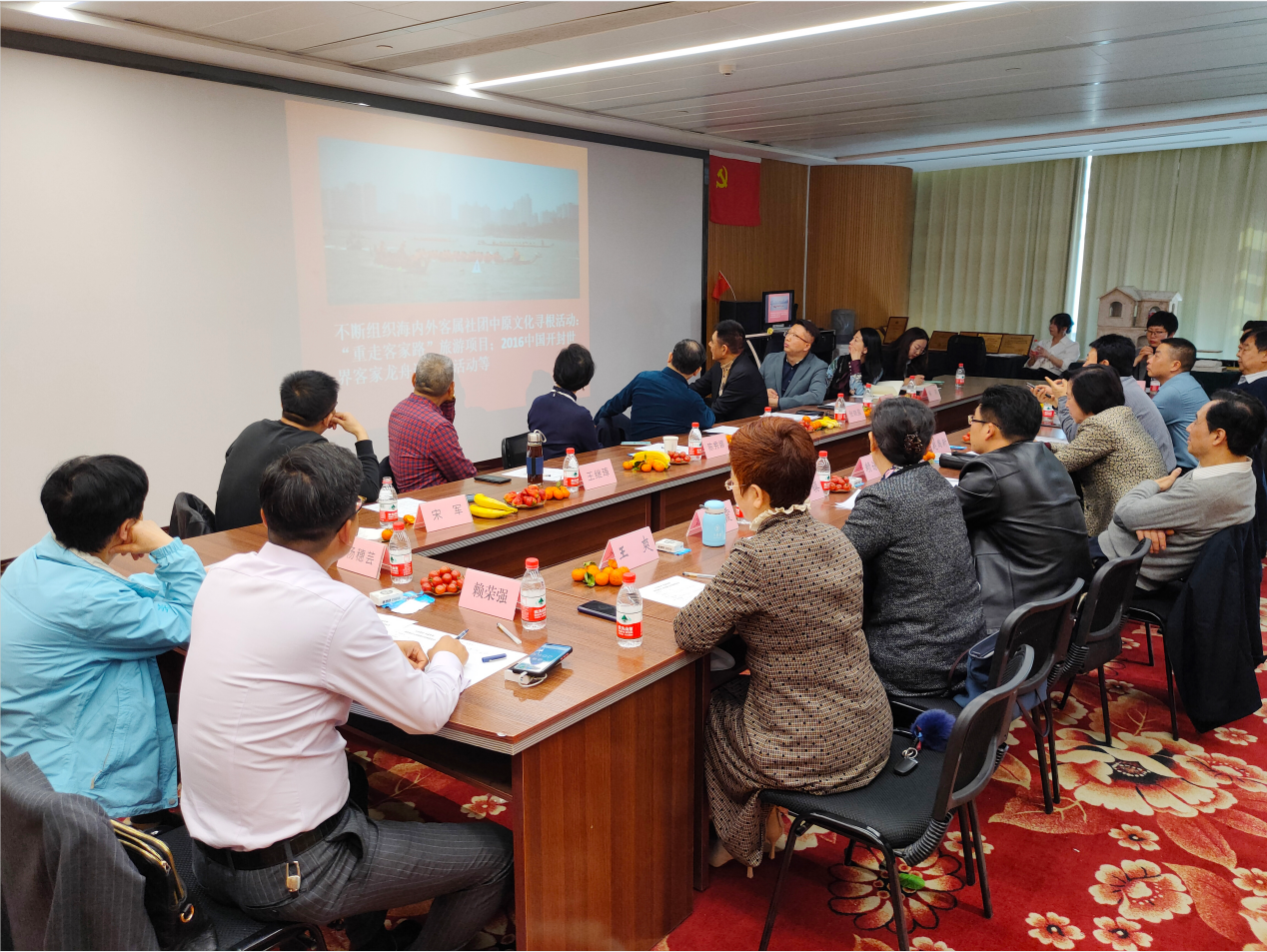 隨后,省客聯(lián)會(huì)黨支部書(shū)記羅建中簡(jiǎn)要介紹河南省客家聯(lián)合會(huì)發(fā)展情況。他從客家文化淵源、省客聯(lián)會(huì)發(fā)展歷程、重大活動(dòng)、品牌價(jià)值等方面娓娓道來(lái)。