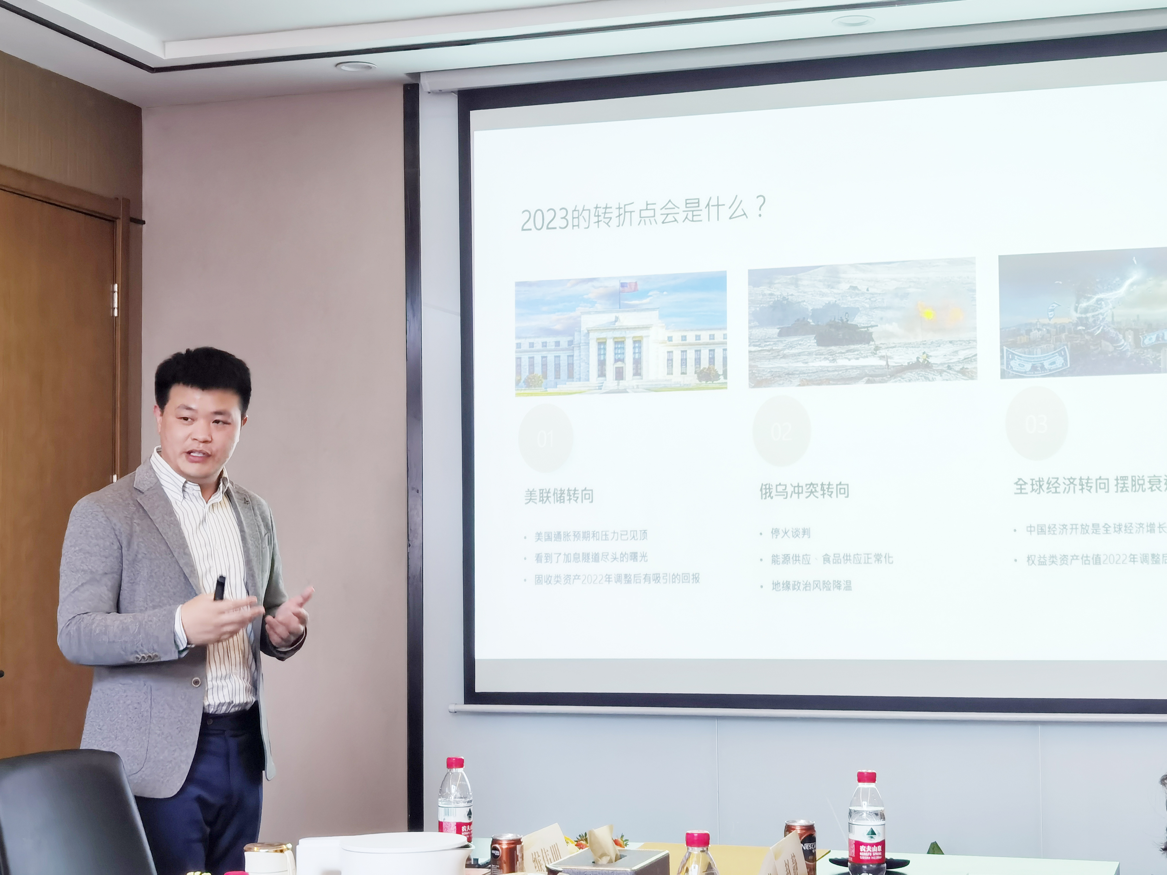 隨后,諾亞財(cái)富中原企業(yè)家事業(yè)部總經(jīng)理緱偉明進(jìn)行了主題分享。緱總先帶領(lǐng)大家簡(jiǎn)單回顧了充滿沖突、艱難、危機(jī)的2022年,并結(jié)合美聯(lián)儲(chǔ)加息、俄烏沖突、中國(guó)經(jīng)濟(jì)開(kāi)放等事件的發(fā)展情況對(duì)2023年進(jìn)行了展望,為大家解析了2023年海內(nèi)外的市場(chǎng)環(huán)境。緱總表示,當(dāng)下,經(jīng)濟(jì)基本面快速回暖,境外交易的權(quán)益資產(chǎn)走牛,2023有望迎來(lái)雙擊之年。但機(jī)會(huì)是稍縱即逝的,緱總為大家分析了2023年全球資產(chǎn)配置的重要性,并詳細(xì)講解了當(dāng)下我們應(yīng)該怎么做。