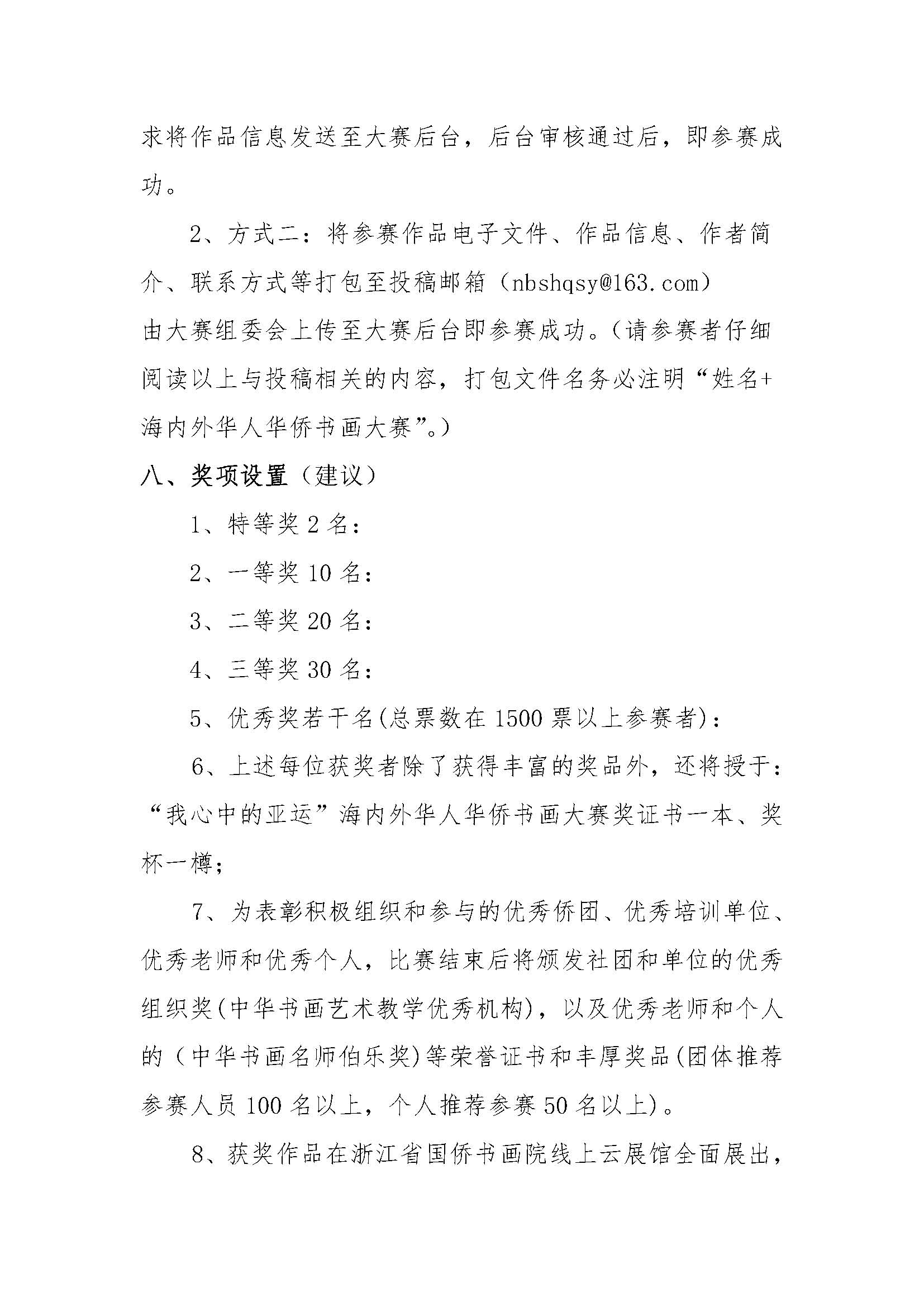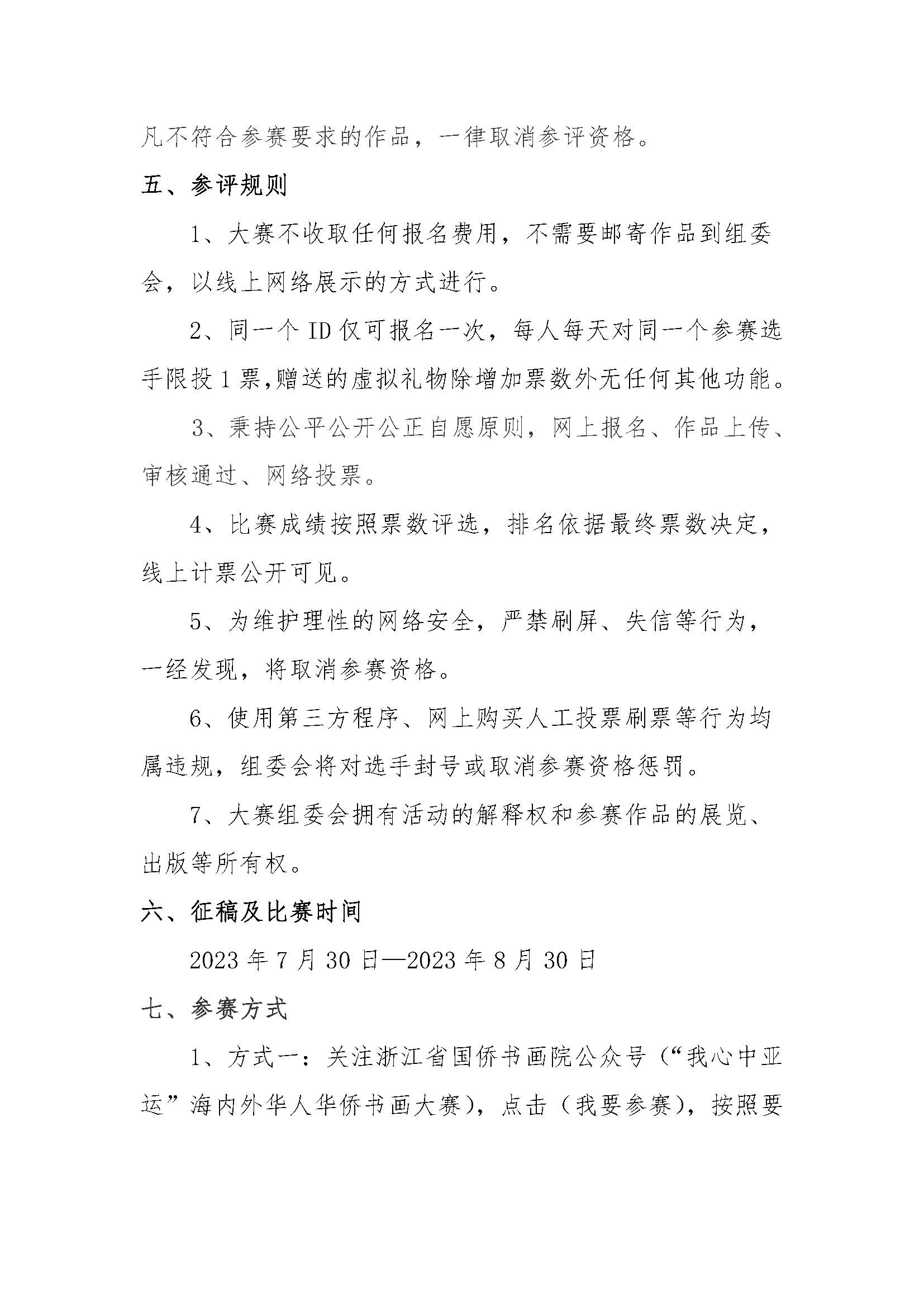 注:大賽不收取任何報名費用,以線上網絡展示的方式進行。獲獎作品將在浙江省國僑書畫院線上云展館全面展出,永久留存宣傳。