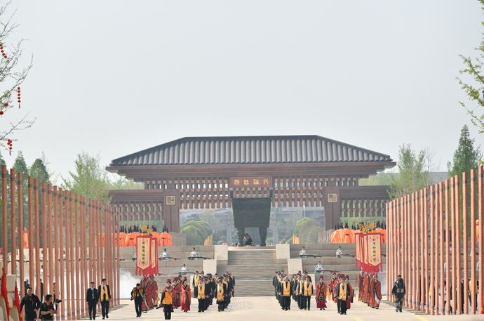 黃帝故里園區(qū)旗幡獵獵、莊嚴(yán)肅穆。